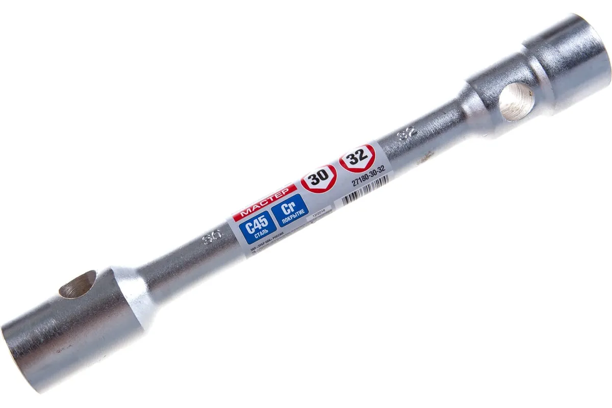 Баллонный торцовый ключ Зубр МАСТЕР 30х32 мм 27180-30-32 предназначен для монтажа и демонтажа автомобильных колес. Он изготовлен из высококачественной стали с хромированным покрытием и имеет закаленные рабочие части, что обеспечивает долгий срок службы и устойчивость к коррозии. Ключ способен стойко выдерживать высокие рабочие нагрузки. Размер - 30х32 мм.