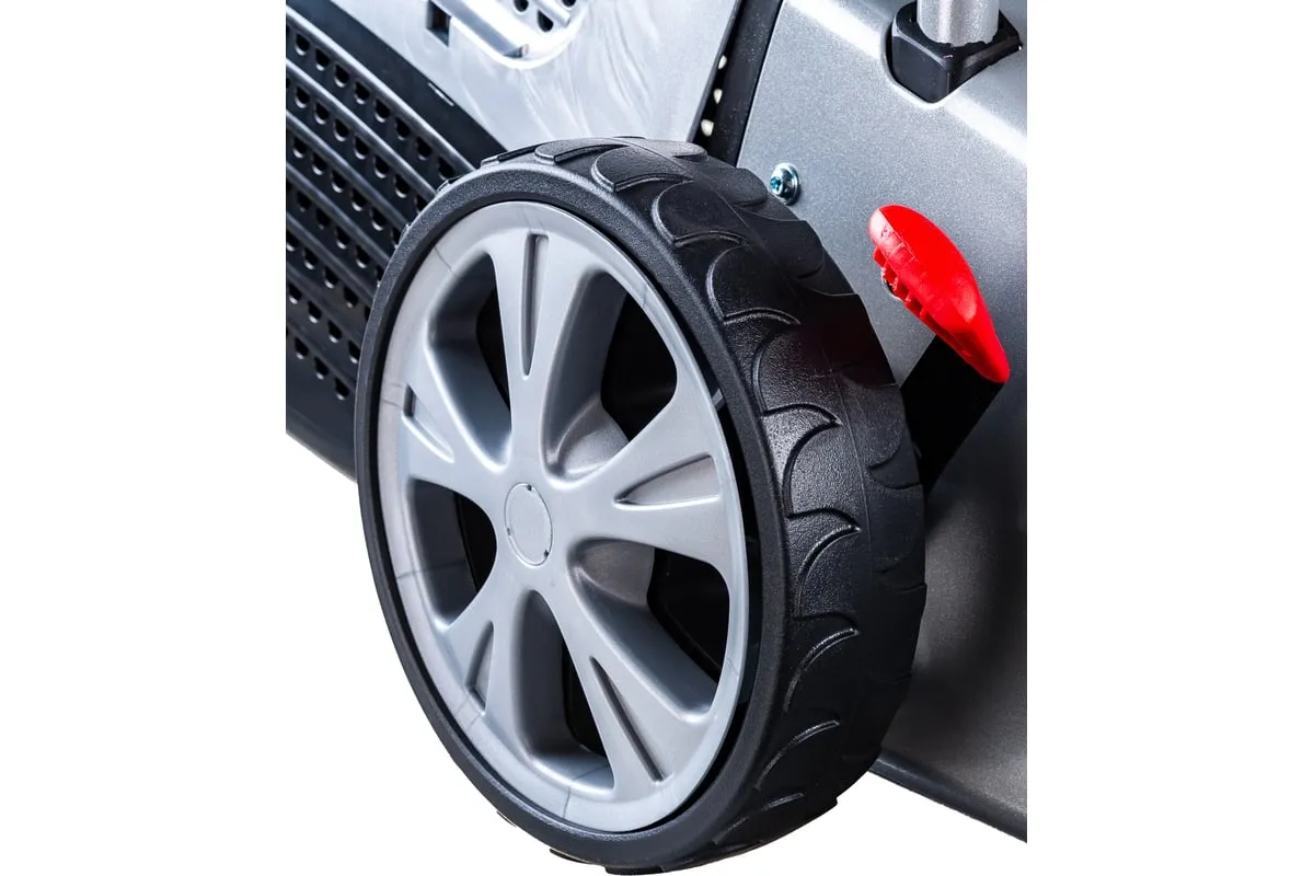 Эргономичный руль и колеса на шарикоподшипниках, которые бережно относятся к газону, еще больше повышают комфорт при работе.