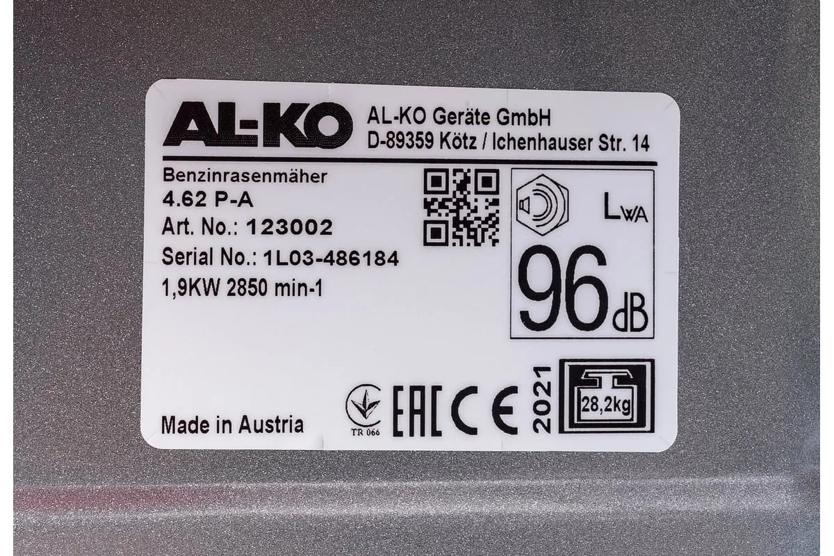 Газонокосилка оснащена бензиновым двигателем AL-KO Pro 125 QSS мощностью 1.9 кВт, который обеспечивает долгую службу и быстрый запуск благодаря системе быстрого запуска.