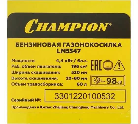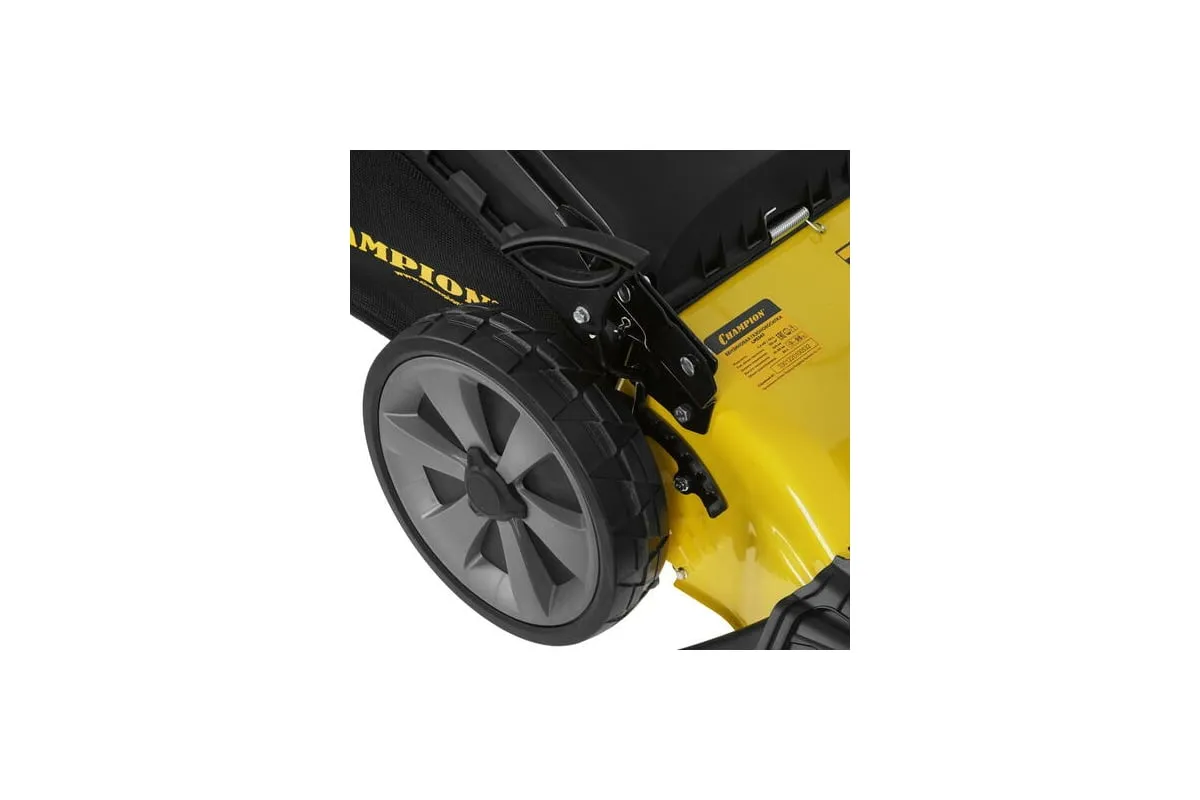 Газонокосилка CHAMPION LM5347 используется для ухода за большими по площади газонами. Она поддерживает четыре рабочих режима: сбор травы в травосборник, боковой выброс, задний выброс и мульчирование (измельчение) для последующего удобрения почвы. Регулировка высоты скоса реализована центральным рычагом и осуществляется в диапазоне от 20 до 80 мм. Привод на задние колеса позволяет экономить силы оператора в процессе работы.