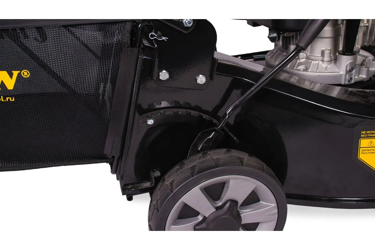 Травосборник рассчитан на 75 литров отходов, что увеличивает продолжительность рабочего цикла.
