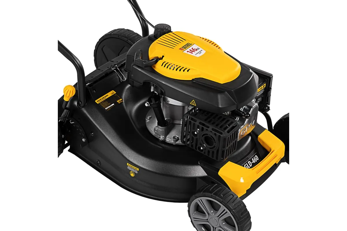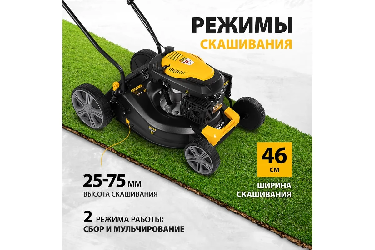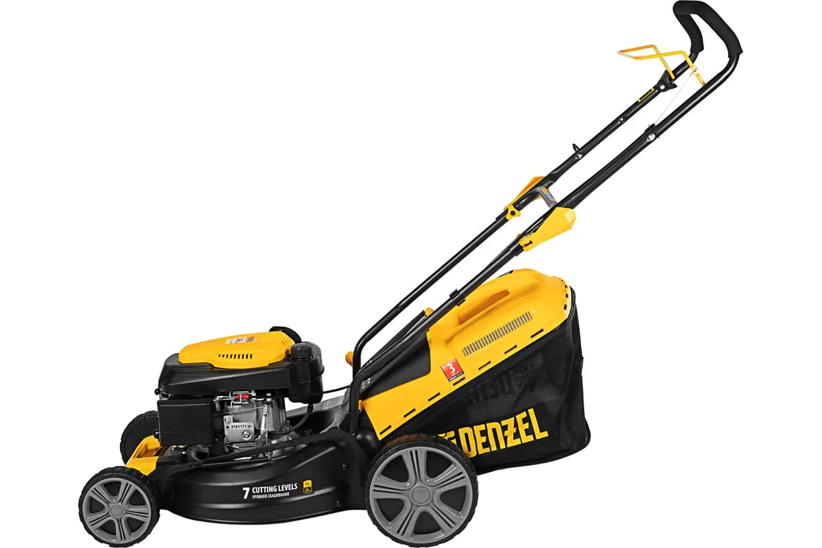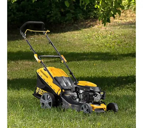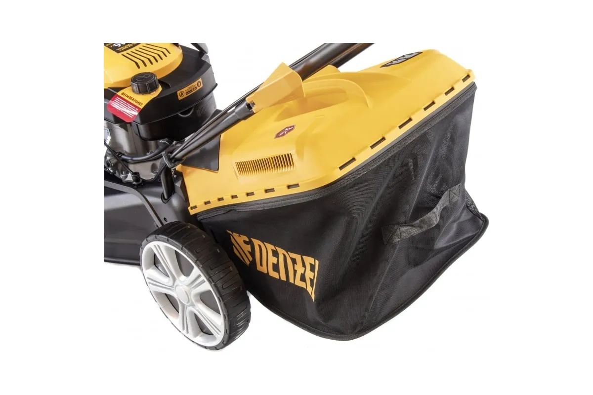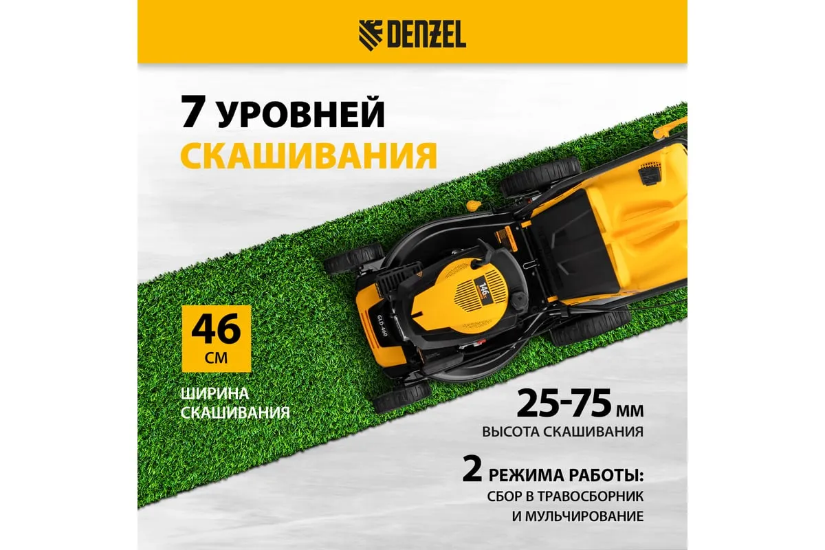 Бензиновая газонокосилка Denzel GLD-460 58802 легко справится с густой толстой растительностью на приусадебном участке.