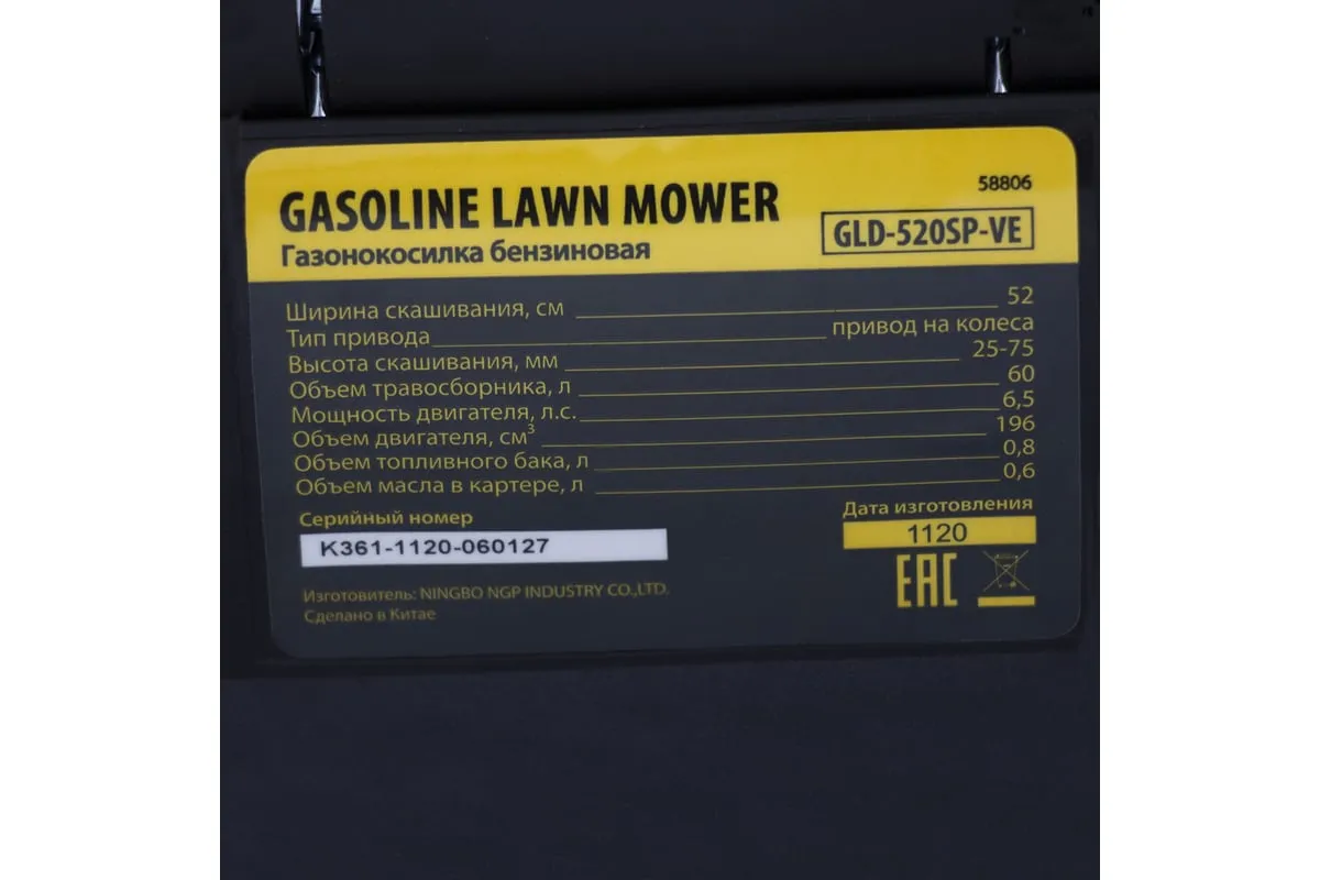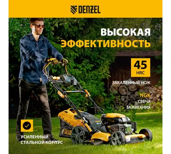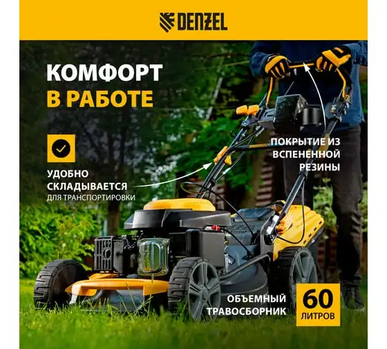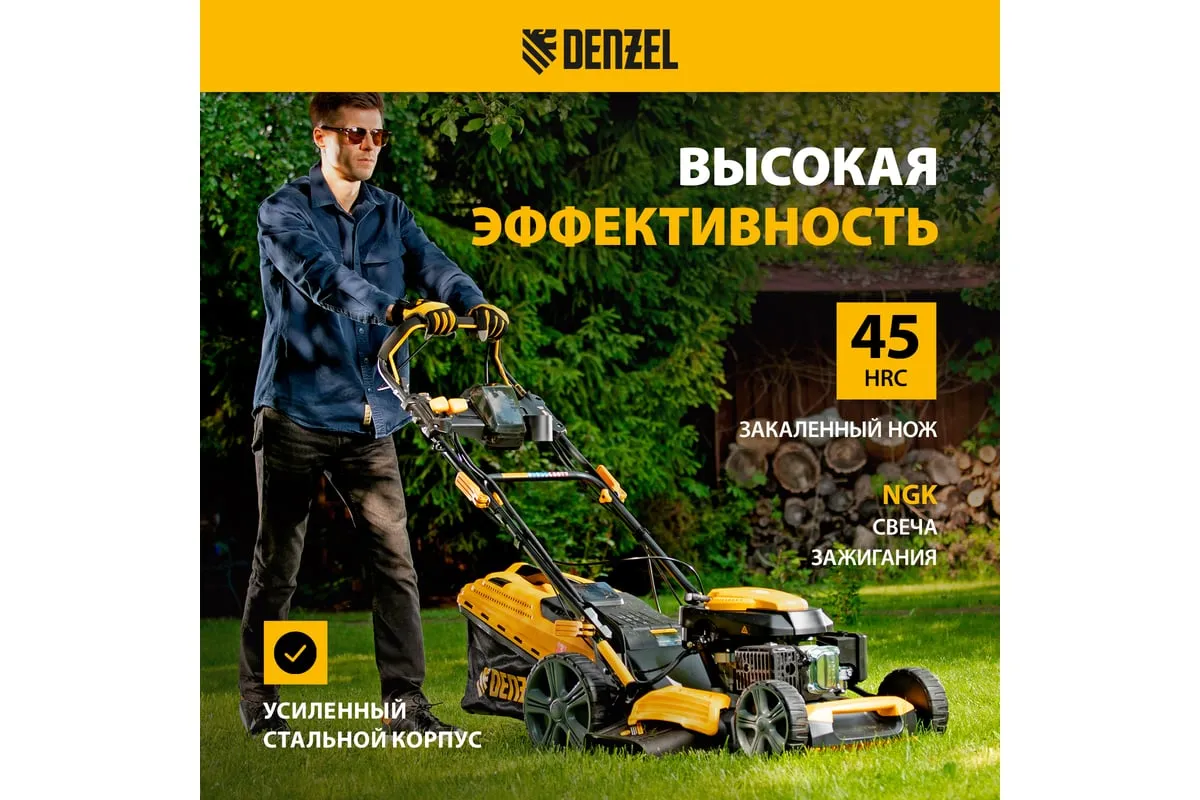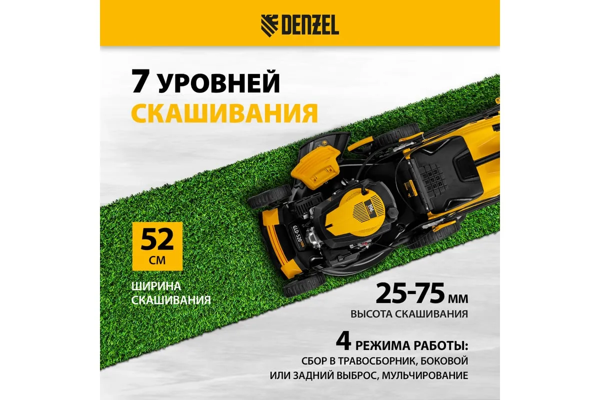 Бензиновая газонокосилка DENZEL GLD-520SP-VE 58806 применяется для ухода за газоном на частном участке.