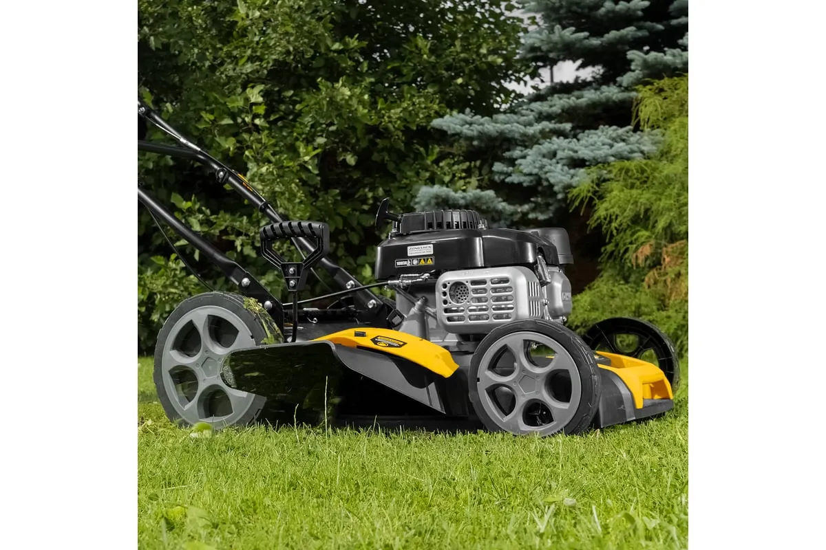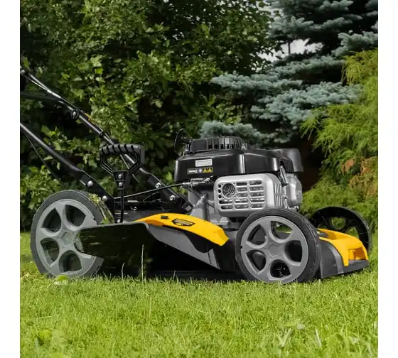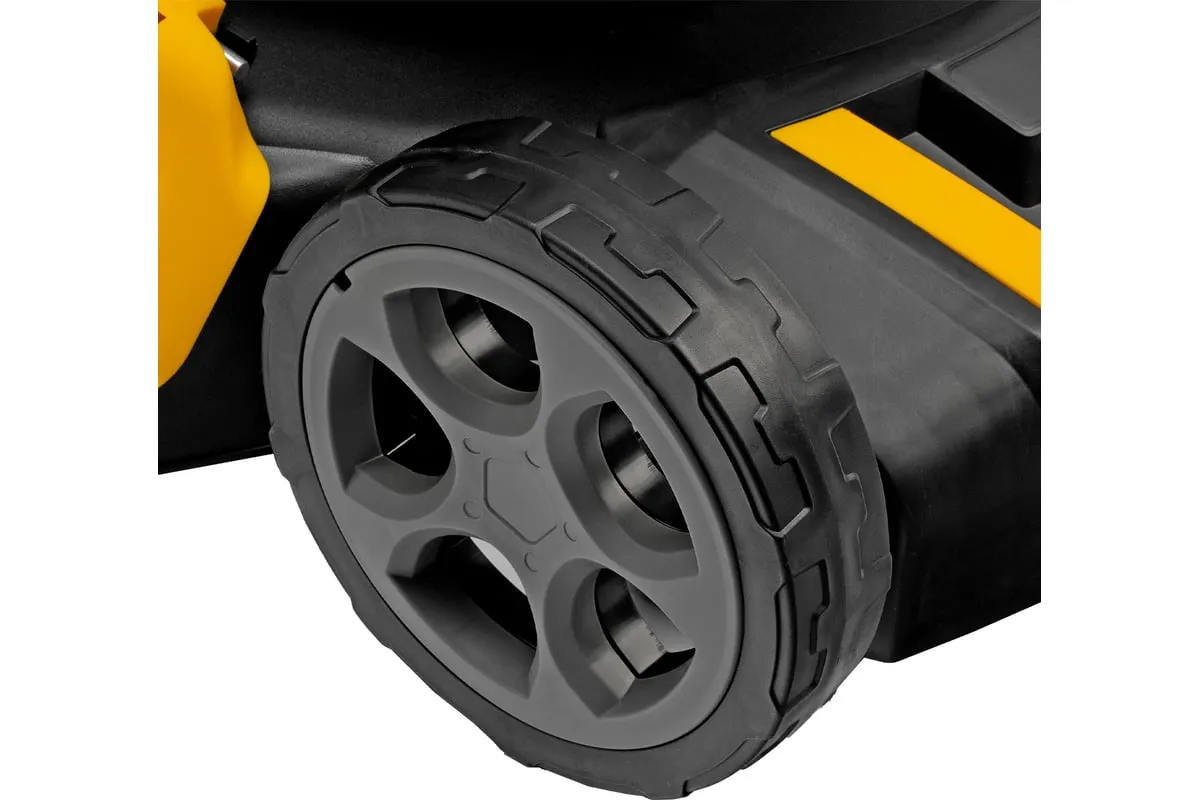 Широкие колеса Eco-friendly позволяют газонокосилке легко проходить по газону, не повреждая его.