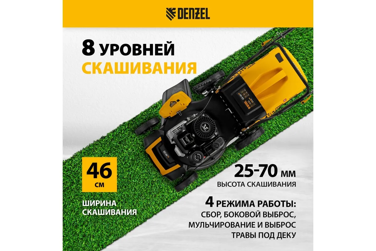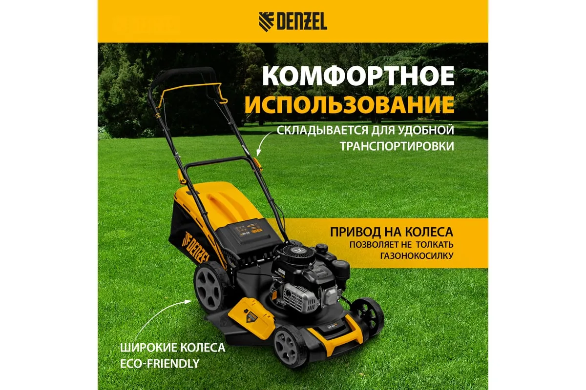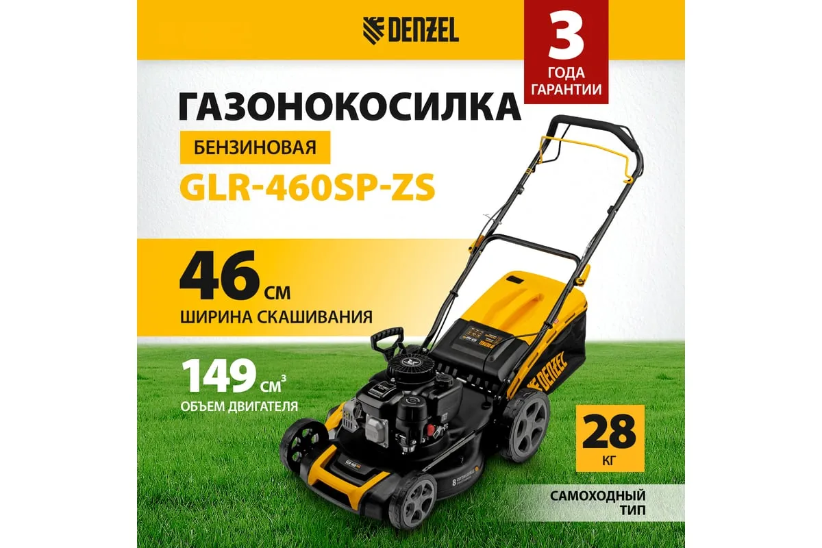 Бензиновая газонокосилка Denzel GLR-460SP-ZS 58824 предназначена для стрижки газонов и скашивания травы в саду, будет полезна для ухода за дачным участком или придомовой территорией.