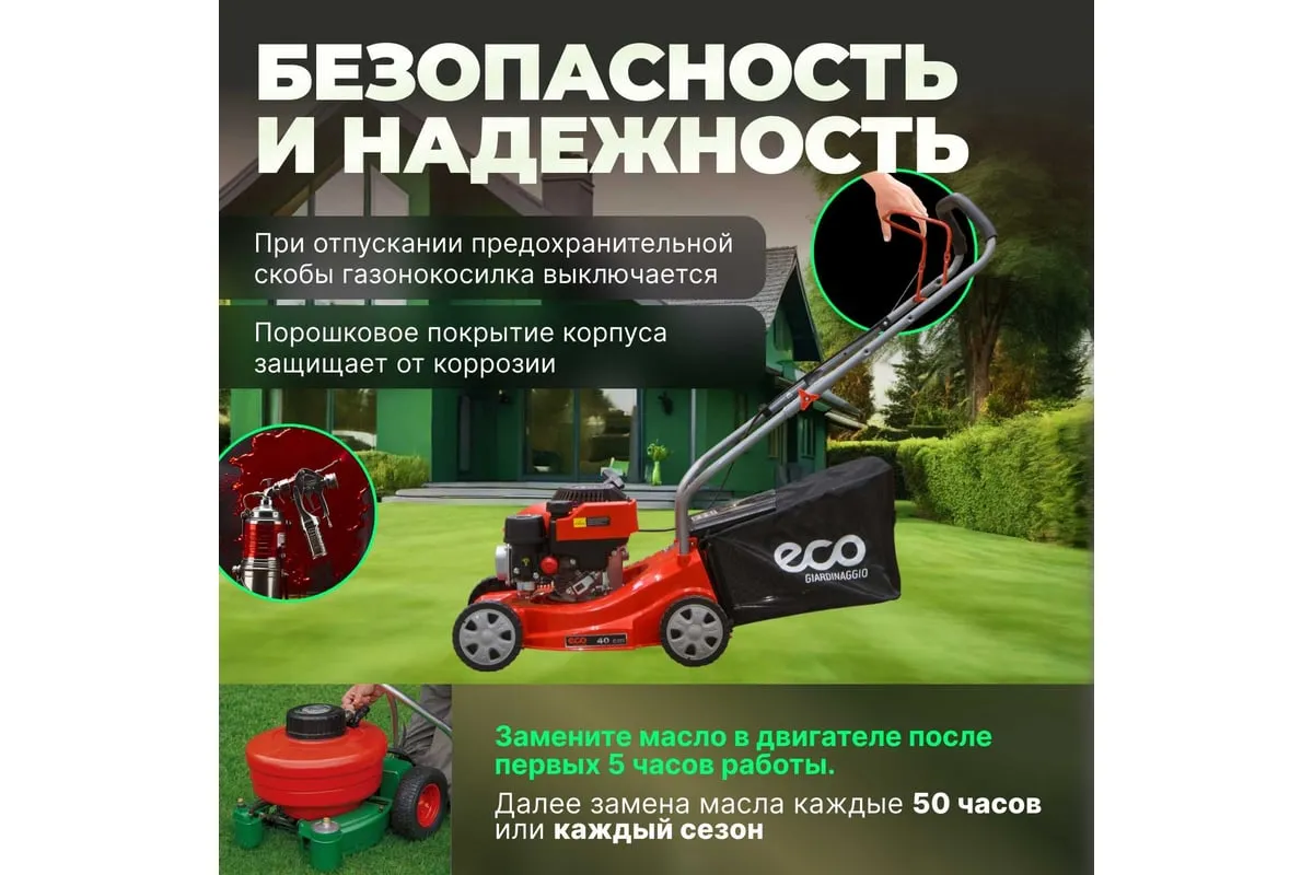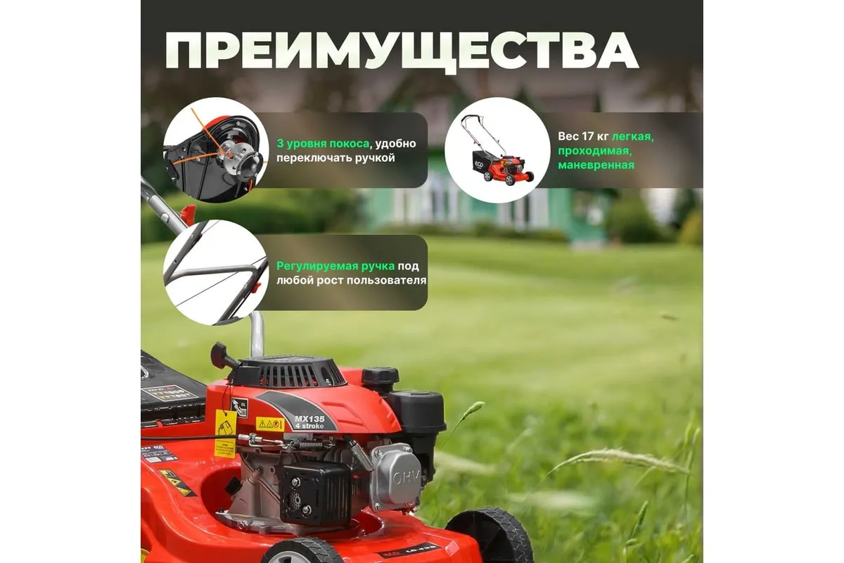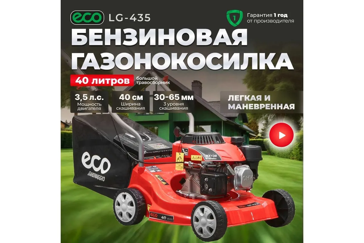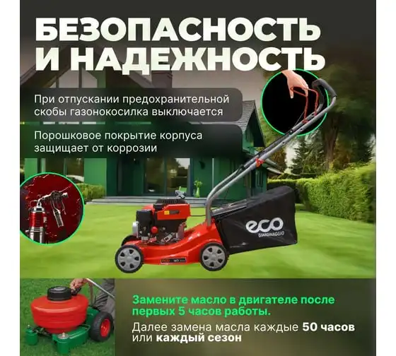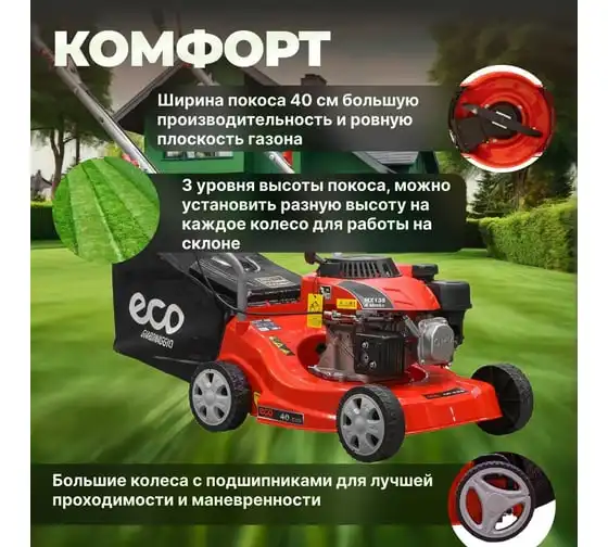 Бензиновая газонокосилка ECO LG-435 - агрегат для ухода за газоном на частном участке.