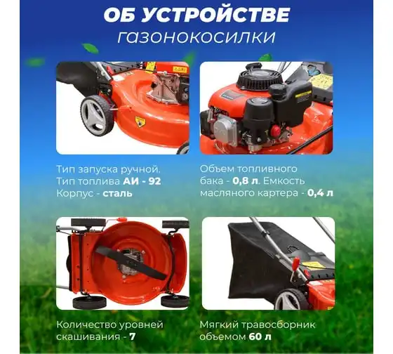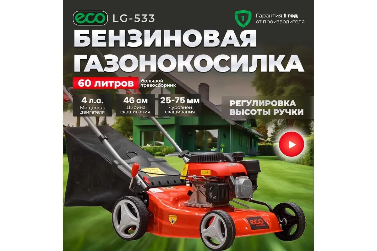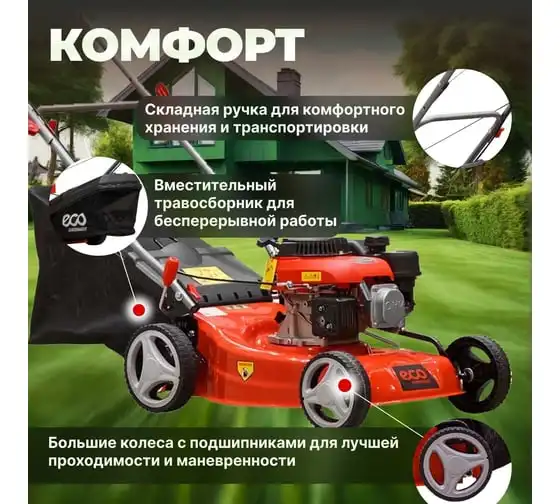 Бензиновая газонокосилка ECO LG-533 - агрегат для ухода за газоном на частном участке.