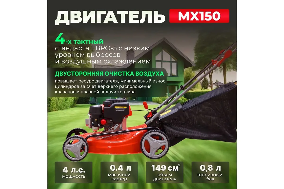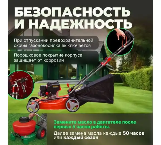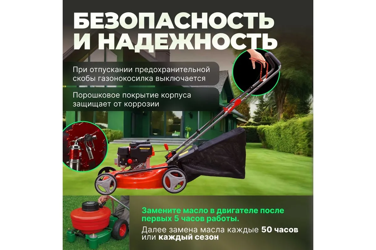 Удобство использования. Регулируемая от 25 до 75 мм высота скашивания позволяет подстригать газон на любую необходимую высоту.