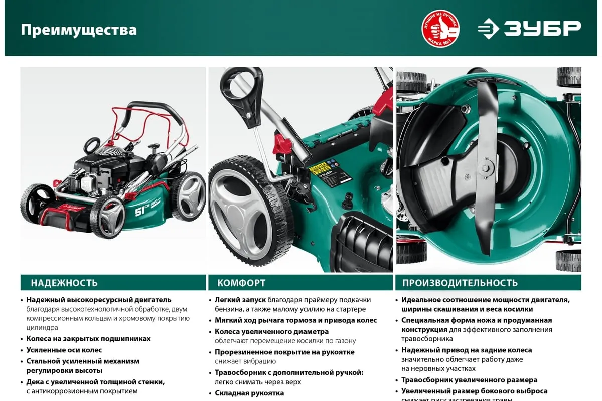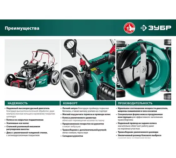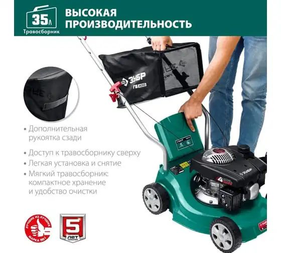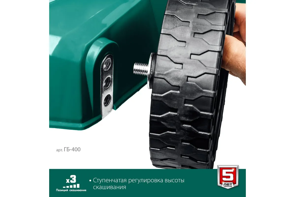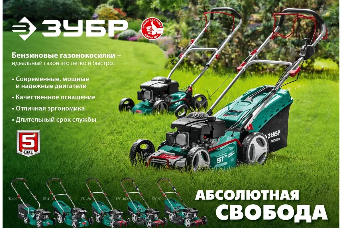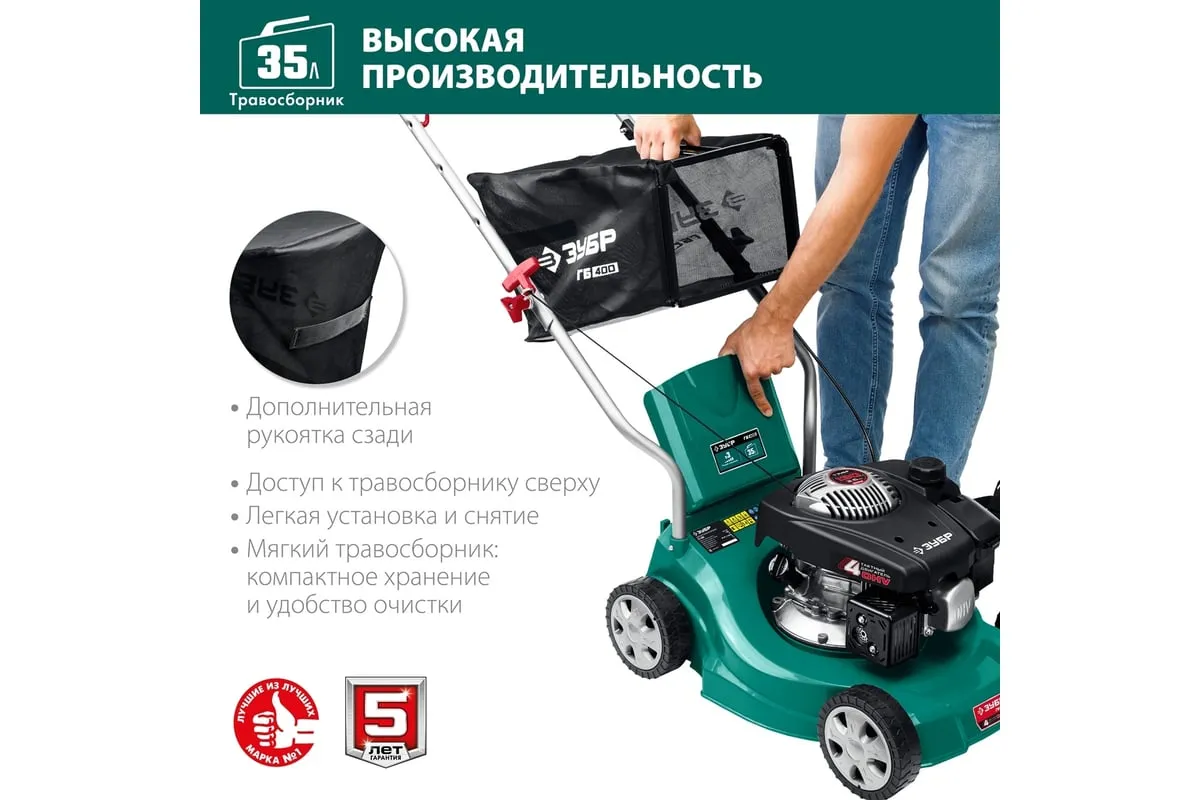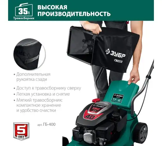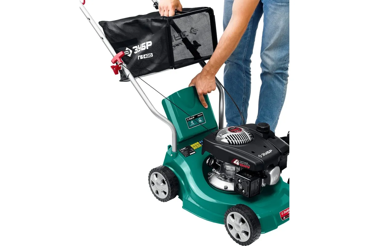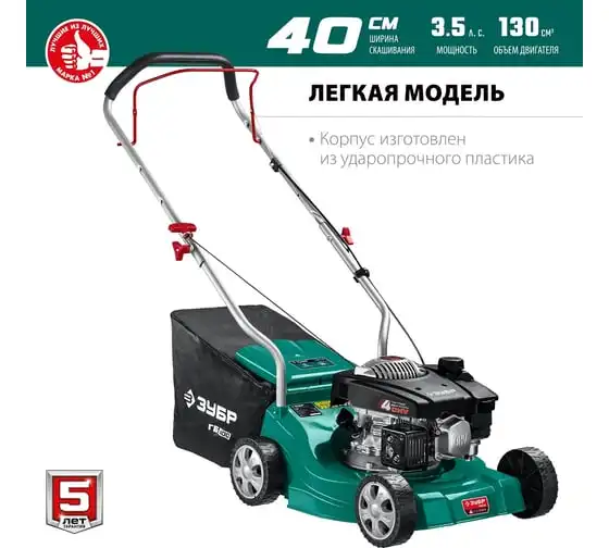 Бензиновая газонокосилка ЗУБР 400 мм, 2.5 л.с. ГБ-400 – облегченная модель для стрижки густой растительности на садовых и придомовых территориях. Модель оборудована мощным бензиновым двигателем, онобеспечивает автономную работу в любой части участка. Ручка с мягкой накладкойобеспечивает надежный хват и комфорт в процессе работы. Для экономии местапри транспортировке и хранении предусмотрена складная рукоятка.