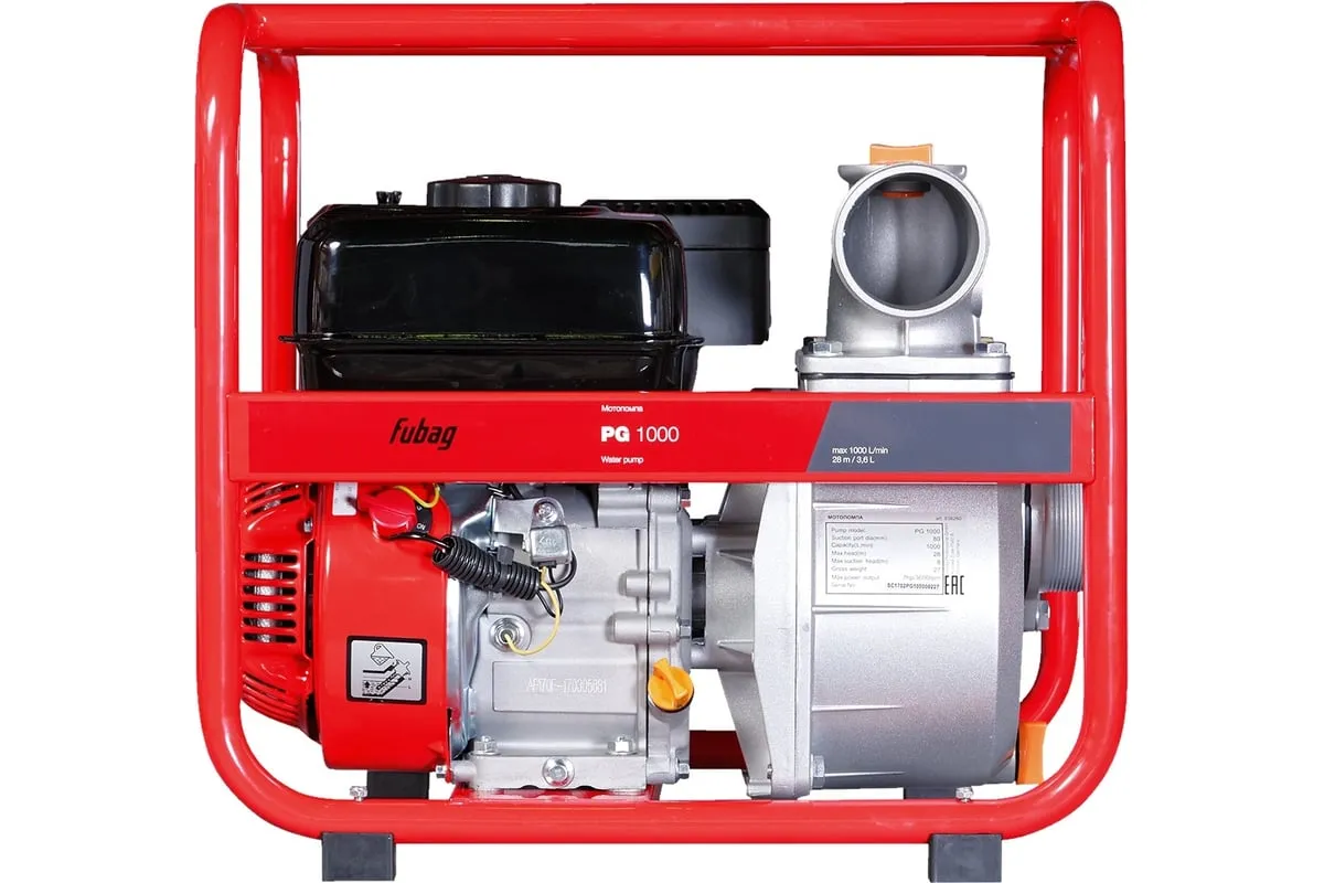 Бензиновая мотопомпа для чистой воды FUBAG PG 1000 838751 отличается высокой производительностью до 1000 л/мин и напором 28 м. Подходит для пожаротушения, организации полива, для откачки воды во время весенних половодий.