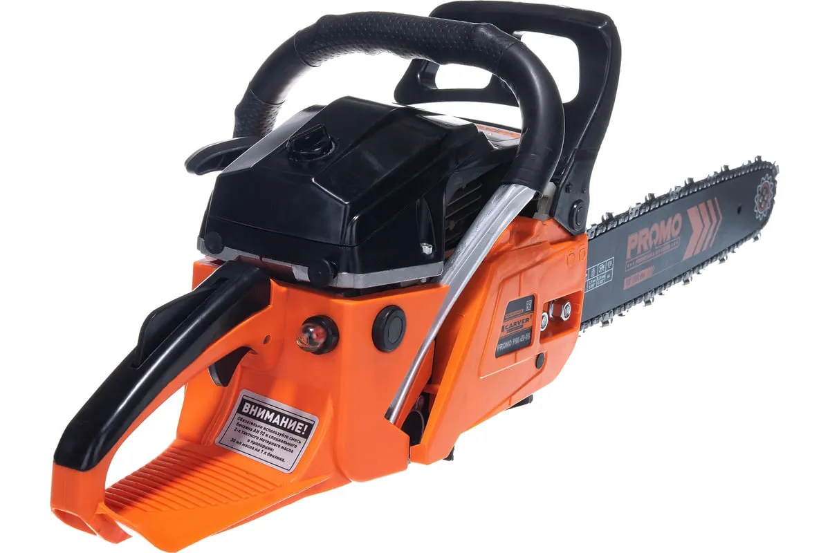 Бензиновая пила CARVER PROMO PSG-45-15 01.004.00023 является инструментом для обрезки сучьев, распиливания древесины. Предназначена для работ на садовом и приусадебном участке. Система Quick Start обеспечивает легкий запуск двигателя. Для доступа к воздушному фильтру не требуется использование дополнительных инструментов. Предусмотрена антивибрационная система, которая делает работу комфортной. За счет тормоза цепи обеспечен высокий уровень безопасности.