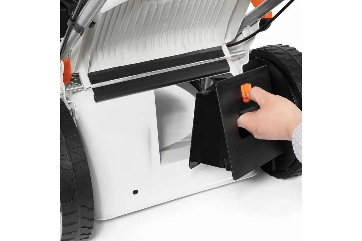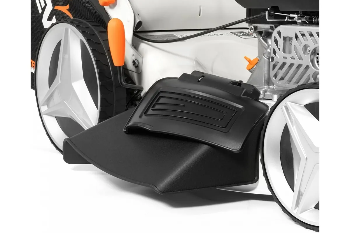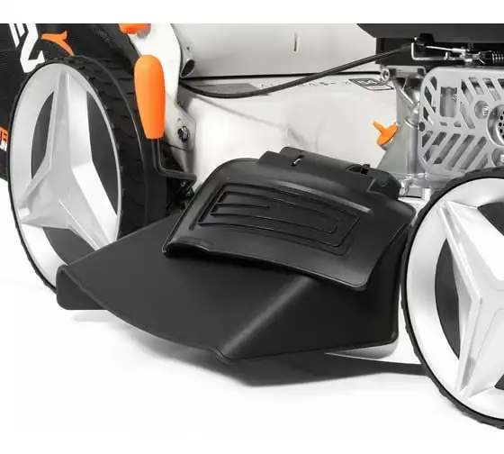 Комбинированный травосборник объемом 65 л обеспечивает продолжительную работу без частых перерывов для его опустошения.