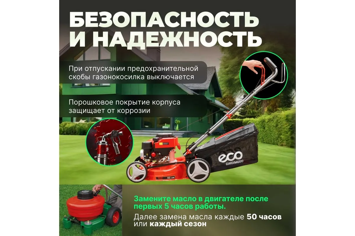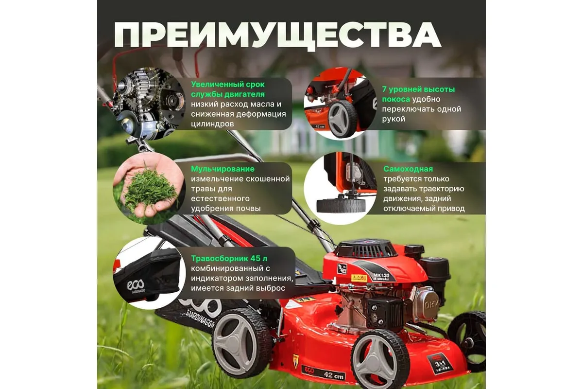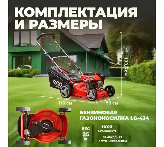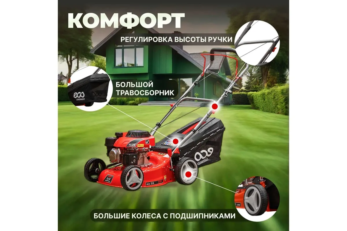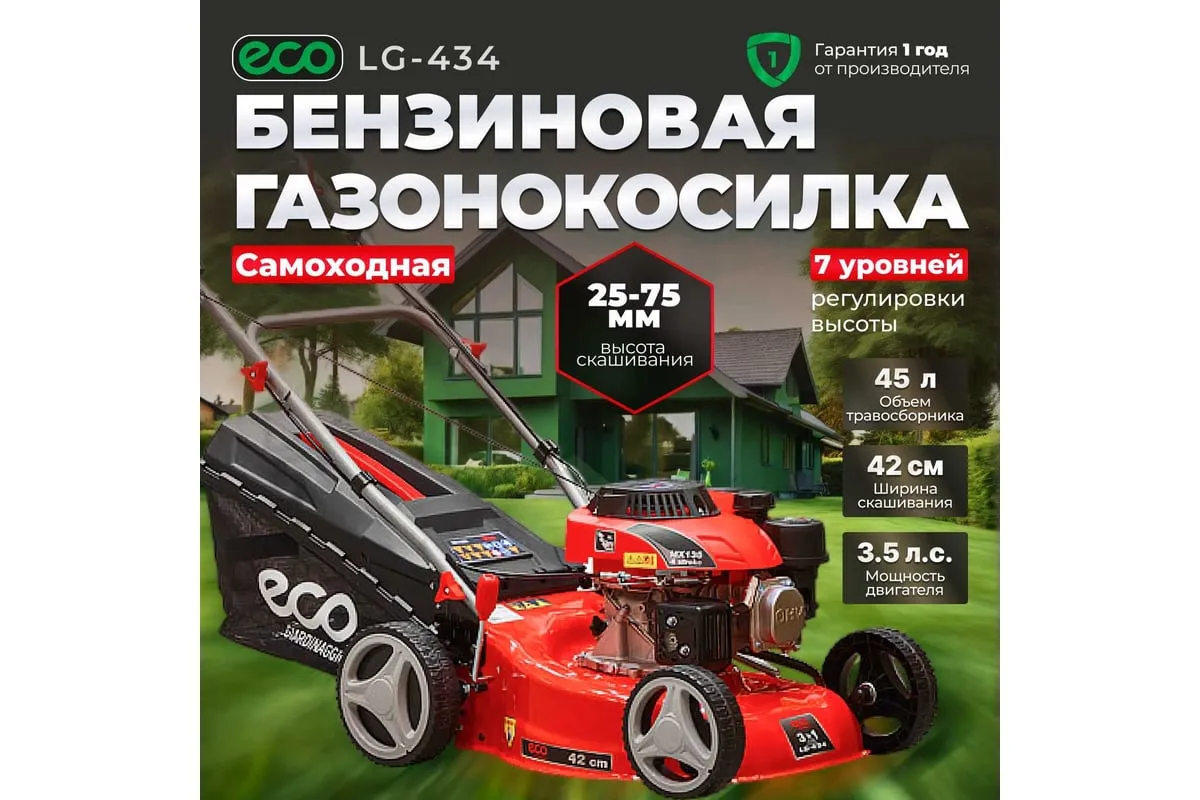 Бензиновая самоходная газонокосилка ECO LG-434 - агрегат для ухода за газоном на частном участке.