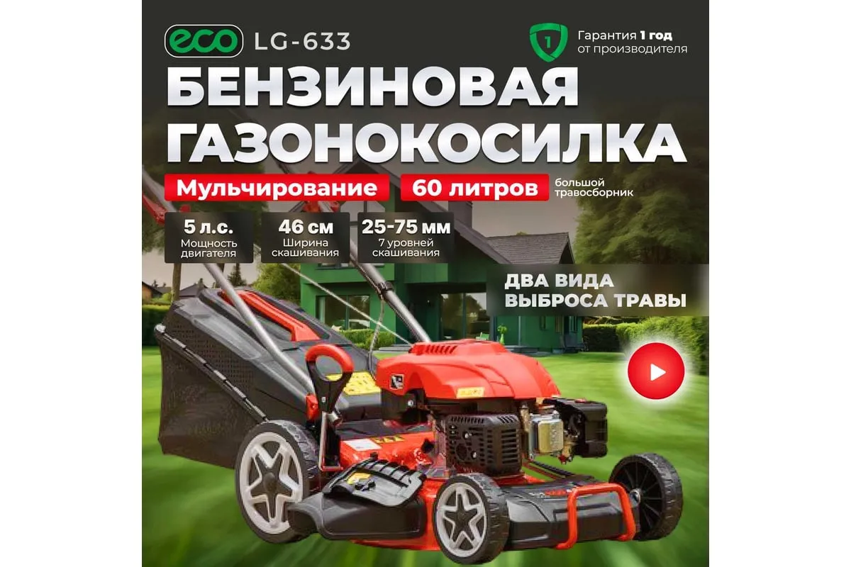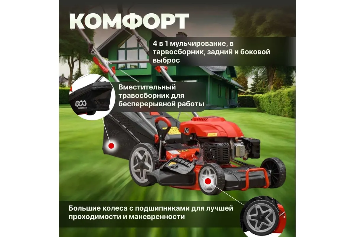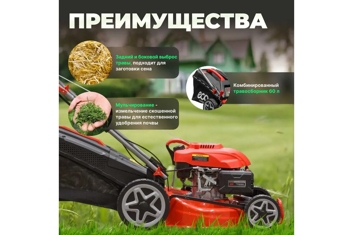 Бензиновая самоходная газонокосилка ECO LG-633 - агрегат для ухода за газоном на частном участке.