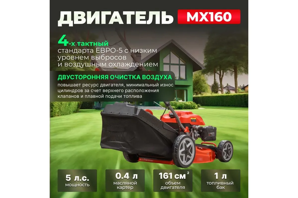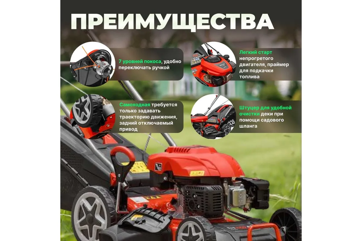 Предусмотрена функция мульчирования, которая позволяет мелко измельчать скошенную траву и использовать её в качестве удобрения.