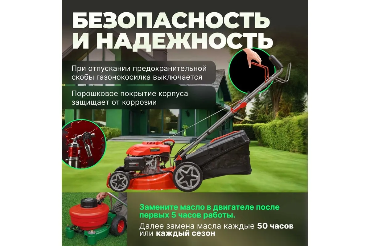 Удобство использования. Травосборник объемом 60 л оснащен индикатором для удобства контроля за его заполнением.