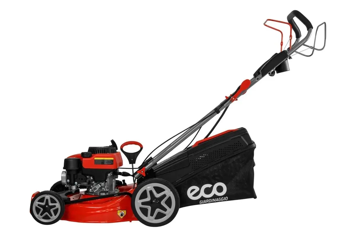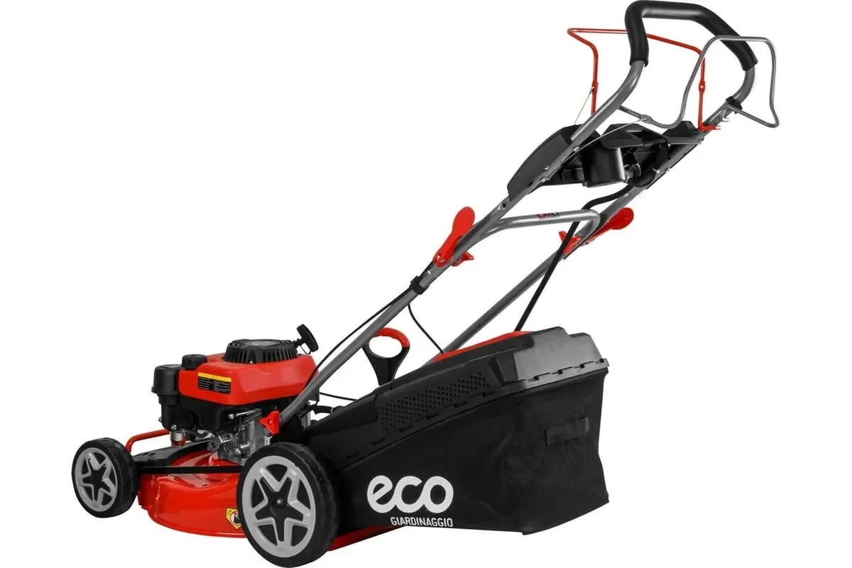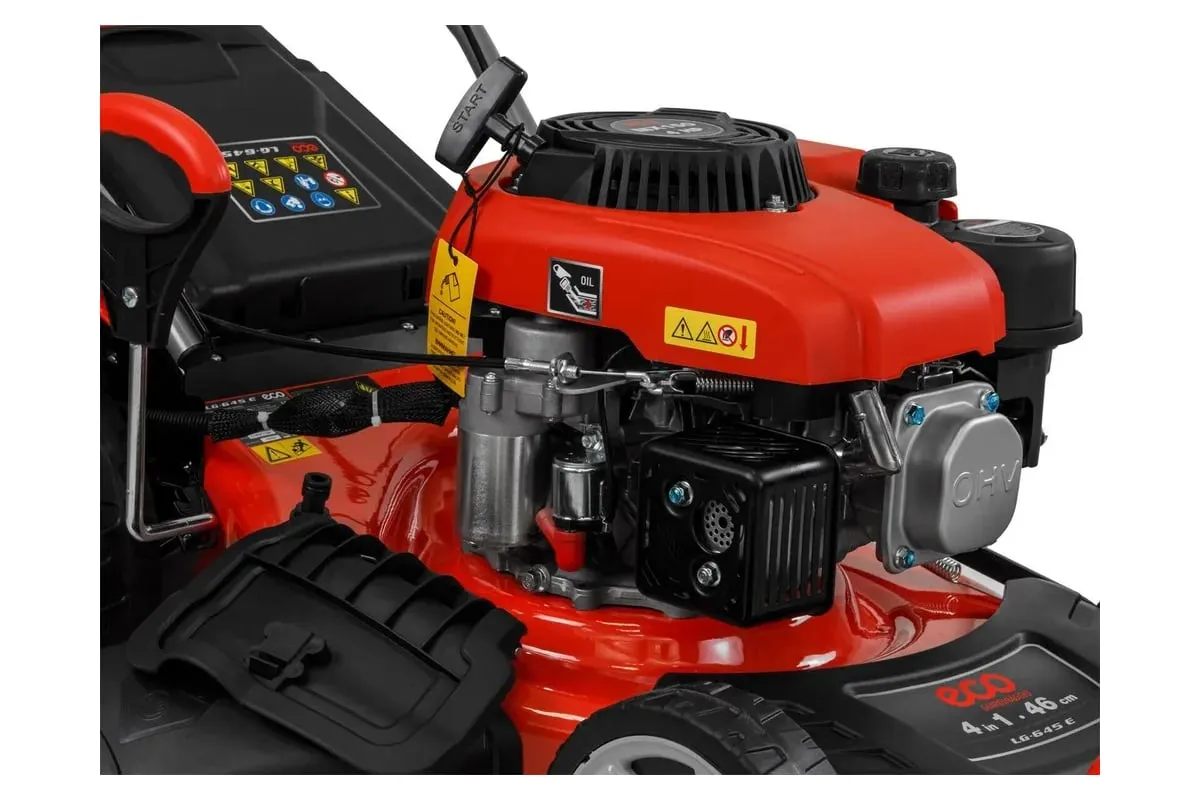 Газонокосилка бензиновая самоходная ECO LG-645 E (EC2014-6) - это мощный и надежный инструмент для ухода за вашим газоном. С шириной захвата 46 см и 7 режимами работы, газонокосилка для дачи обеспечивает высокую производительность и удобство использования. 4-тактный бензиновый двигатель с мощностью 2,9 кВт обеспечивает стабильную работу и высокую производительность. Газонокосилка оснащена электростартером, работающим от Li-ion аккумулятора, что обеспечивает быстрый и легкий запуск двигателя. Функция самоходного движения позволяет легко и быстро перемещаться по газону, а также экономить силы и время. Газонокосилка ECO LG-645 E имеет 4 режима работы: сбор в травосборник, боковой и задний выброс, а также функцию мульчирования. Это позволяет выбрать оптимальный режим работы в зависимости от ваших потребностей и предпочтений. Центральная регулировка высоты скашивания в диапазоне 25-75 мм позволяет легко настроить газонокосилку под любой тип травы и условия работы. Газонокосилка оснащена штуцером подключения шланга для легкой очистки деки после работы и складной рукояткой для удобства хранения и транспортировки. Объем травосборника составляет 60 литров, что позволяет долго работать без необходимости его частого опустошения. Газонокосилка имеет компактные размеры (ширина 52 см, длина 157 см, высота 33 см) и небольшой вес (33 кг), что облегчает ее транспортировку и хранение.