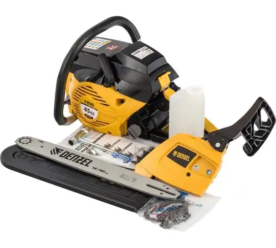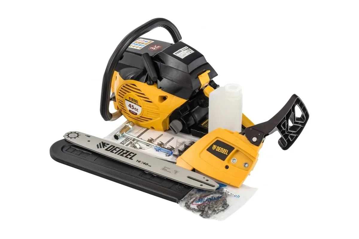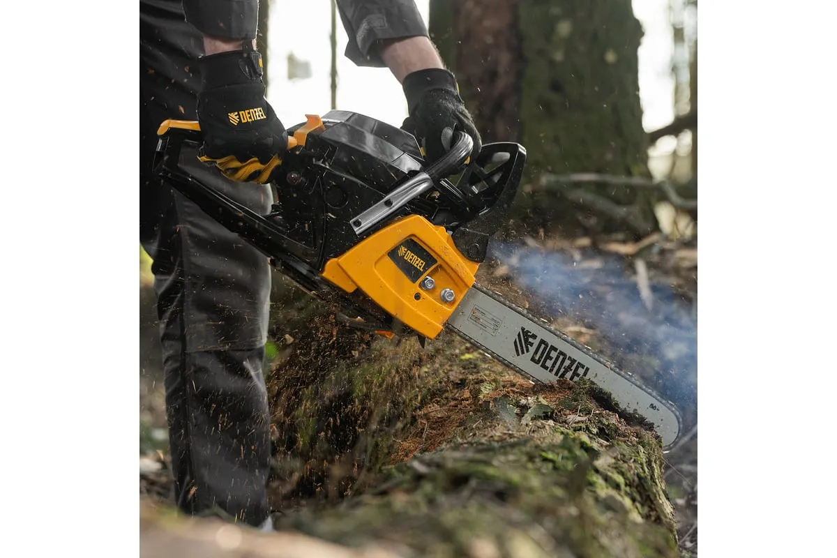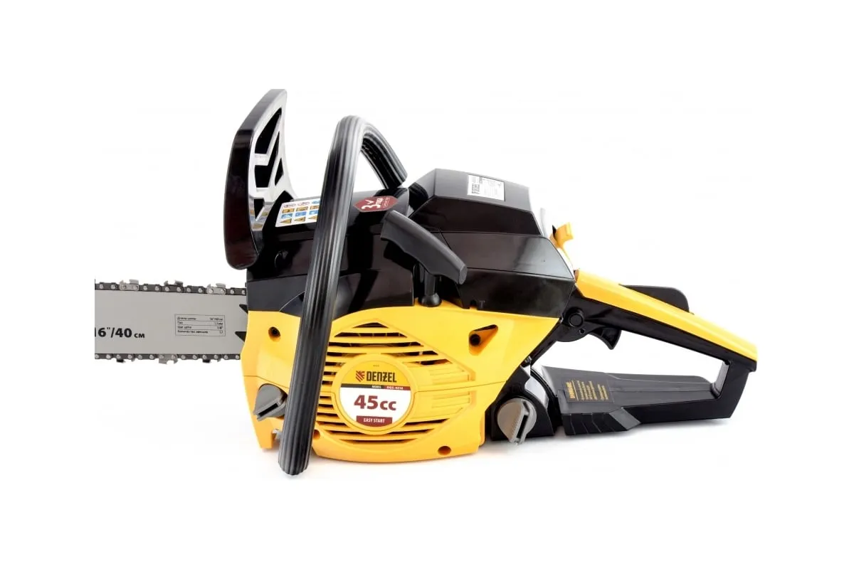 Бензиновая цепная пила Denzel DGS-4516 подходит для обрезки сучьев, распиливания твердой и мягкой древесины. Оборудована двигателем серии Garden Line, который отличается высокой мощностью.