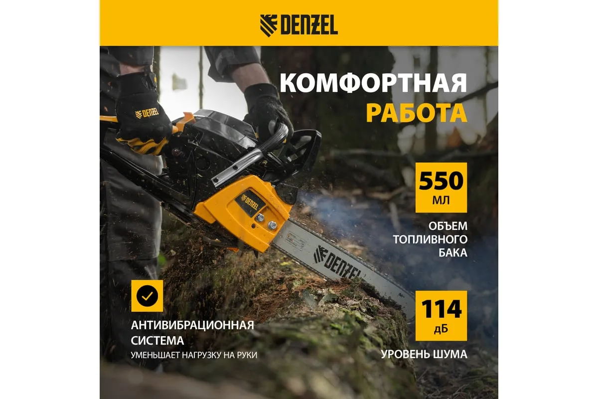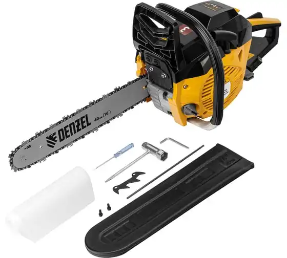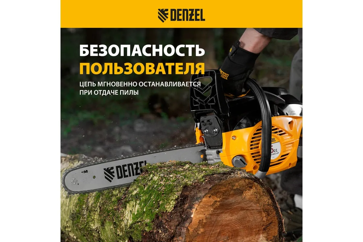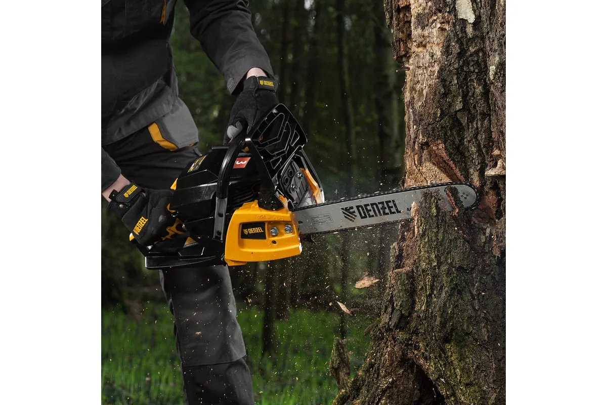 Бензиновая цепная пила Denzel DGS-4516 подходит для обрезки сучьев, распиливания твердой и мягкой древесины. Оборудована двигателем серии Garden Line, который отличается высокой мощностью.