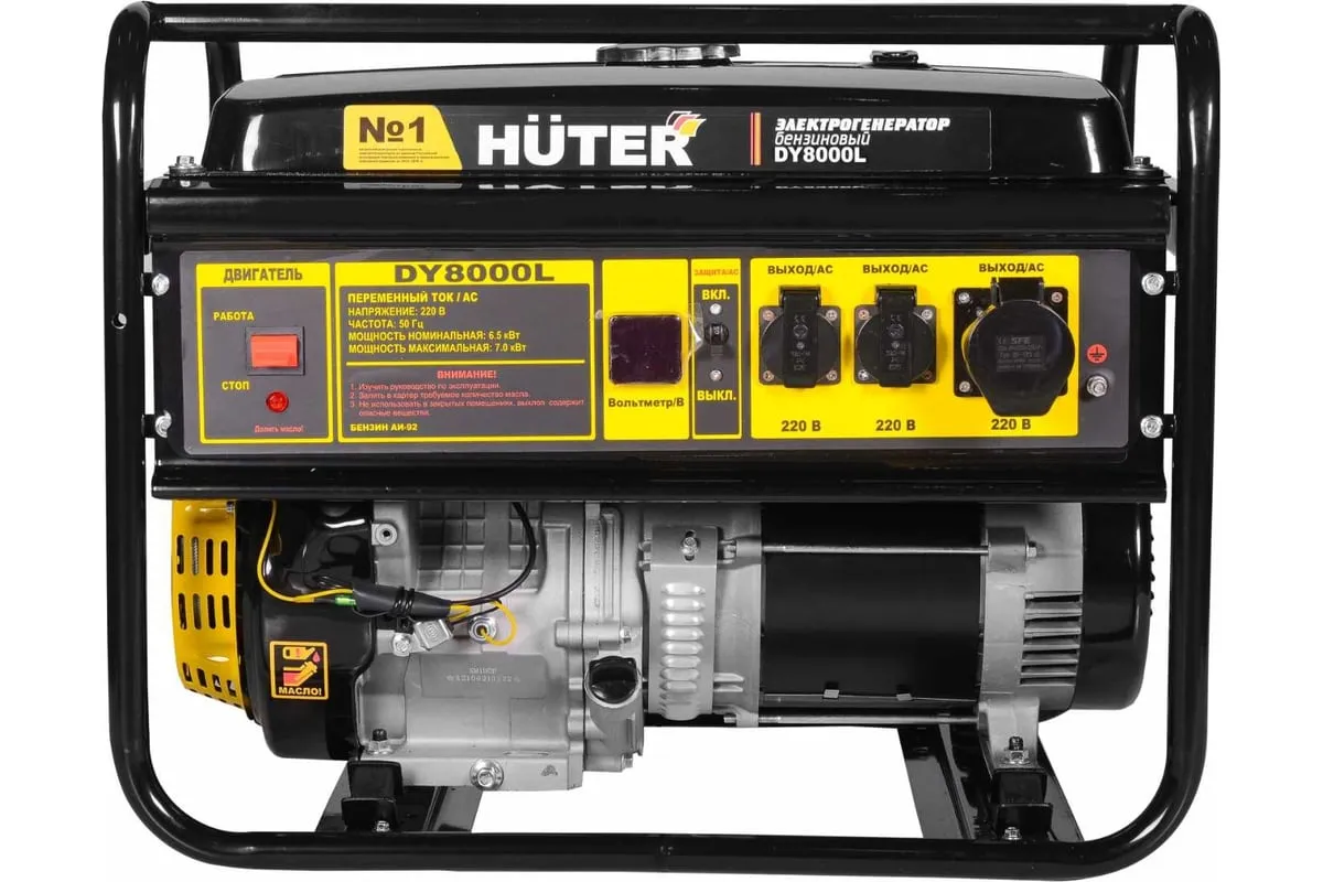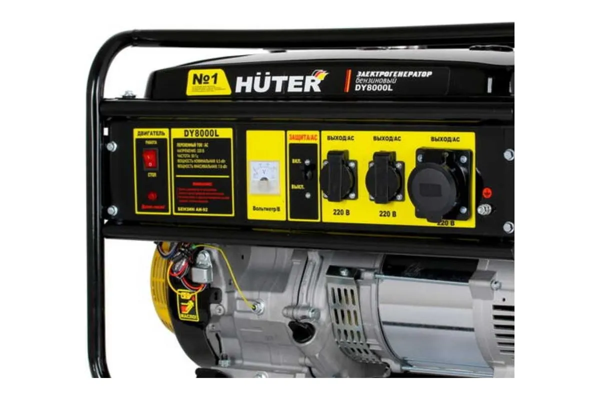 HUTER DY8000L – модель синхронного щеточного электрогенератора с максимальной мощностью 7000 Вт с бензиновым двигателем. Компактная электростанция обеспечит питание приборов и оборудования в полевых условиях.