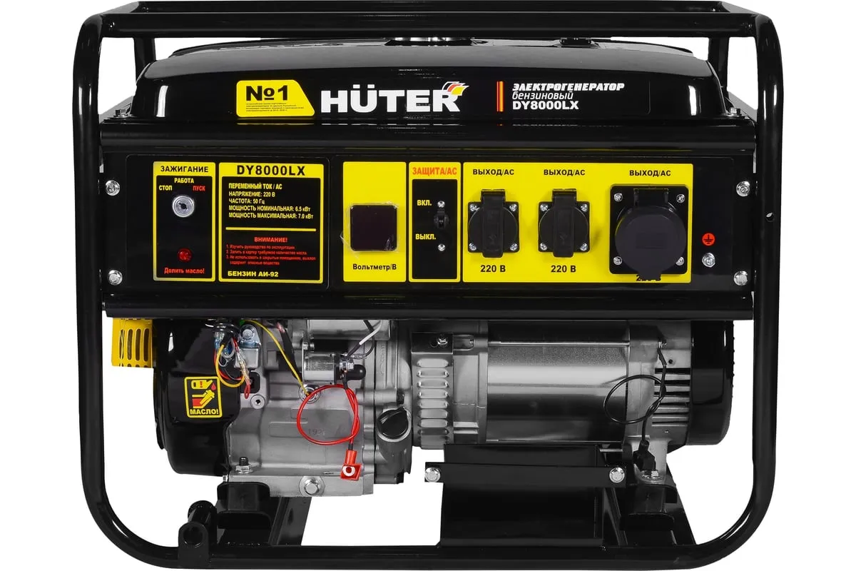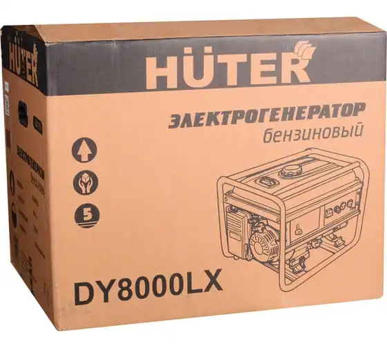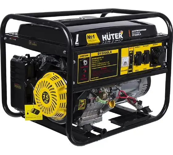 Компактный, надёжный и производительный для своего класса – так можно охарактеризовать портативный бензогенератор HUTER DY8000LX. Он оснащён 4-тактным одноцилиндровым бензиновым двигателем с воздушным охлаждением и электрической машиной – альтернатором, преобразующим механическую энергию в электричество. Модель относится к категории универсальных и может широко использоваться в качестве альтернативного источника переменного тока 220 В, 50Гц. Номинальная мощность агрегата – 6.5 кВт.