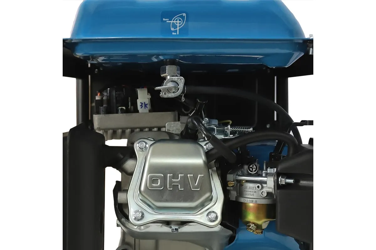 Благодаря наличию инверторного блока, происходит выравнивание напряжения. Это позволяет подключать к устройству приборы, чувствительные к перепадам напряжения, без вреда для них. Цифровой дисплей помогает отслеживать работу устройства. Дисплей имеет 4 функции: напряжение, частота, моточасы и одометр. Датчик аварийного уровня масла производит автоматическую остановку двигателя при недостаточном уровне. Четырехтактный двигатель оснащен принудительным воздушным охлаждением.