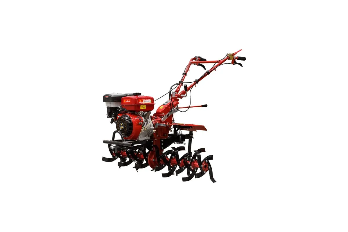 Бензиновый культиватор оснащен универсальной сцепкой для присоединения навесного оборудования. Ширина обработки фрезами 135 см (фрезы в комплекте), съемные секции фрез позволяют сократить ширину обработки до 115 см. Рукоятка управления с регулировкой по высоте и возможностью поворота на 360 градусов обеспечивает комфортную работу. Номинальная скорость культивации 9 соток/ч - расчетная величина для подготовленной равномерной почвы средней твердости без отсутствия препятствий и на максимальной скорости, в зависимости от условий эксплуатации величина может варьироваться.