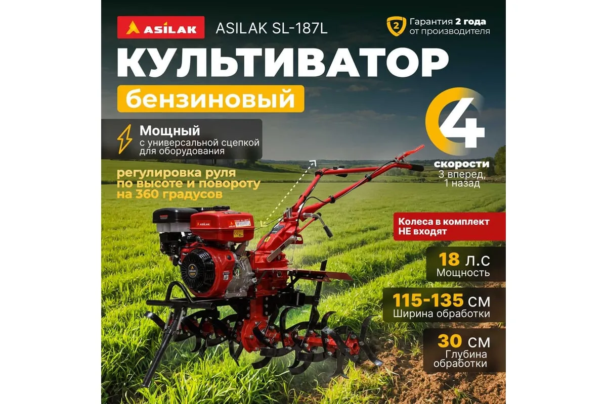 Бензиновый культиватор ASILAK SL-187L AS1556-1 - сельскохозяйственная машина для обработки и рыхления почвы в садах и на приусадебных участках. Имеет мощный бензиновый двигатель 18 л.с. Возможности выбора скорости делает машину более маневренной и эффективной, а наличие реверса поможет вытащить её в случае застревания в земле.