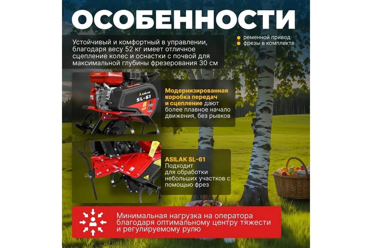 Легкий и компактный культиватор в линейке ASILAK. Отличное соотношение небольшого веса и большой мощности. Предназначен в первую очередь для обработки небольших участков с помощью фрез.