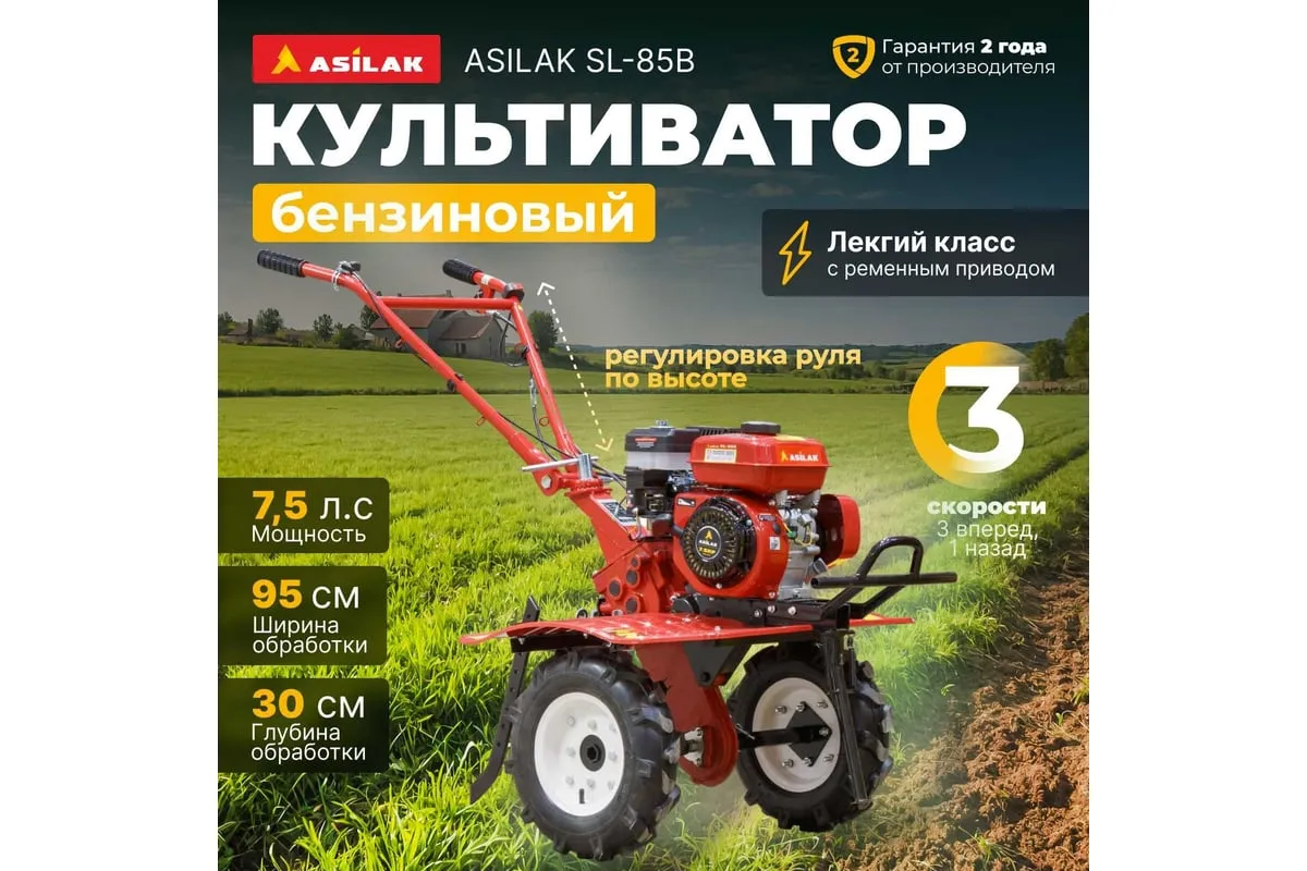 Бензиновый культиватор ASILAK SL-85B AS1529-4010 - сельскохозяйственная машина для обработки и рыхления почвы в садах и на приусадебных участках. Возможности выбора скорости делает машину более маневренной и эффективной, а наличие реверса поможет вытащить её в случае застревания в земле. В передней части культиватора предусмотрена опора - для устойчивости в нерабочем состоянии.