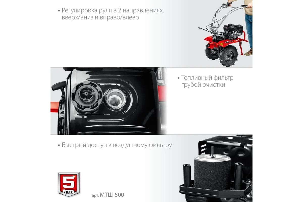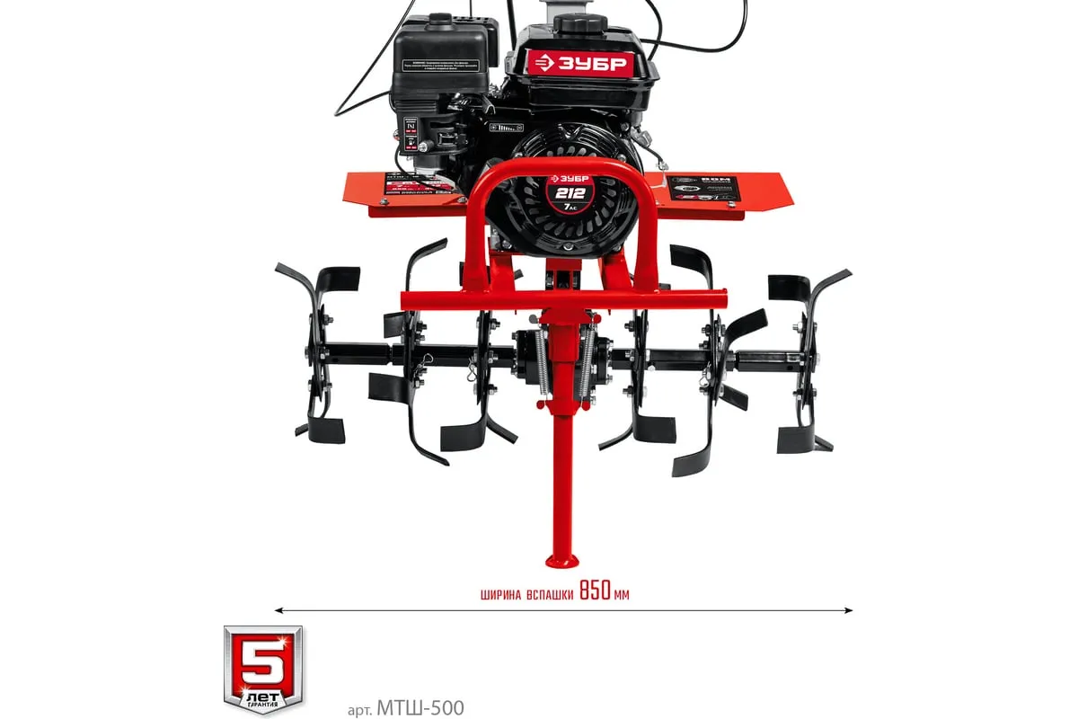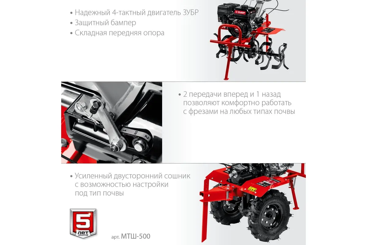 Бензиновый мотоблок с ВОМ ЗУБР 212 см3 МТШ-500 – мощная модель для обработки и возделывания земли. Благодаря наличию вала отбора мощности мотоблокобладает широким спектром применения. Вместительный топливный бакобеспечивает продолжительную работуи позволяет сократить частоту перерывов для дозаправки. Для устойчивости машины в нерабочем состояниипредусмотренна складная передняя опора. Колеса большого диаметра с глубоким рисунком протектораобеспечивают отличную проходимостьпо любой поверхности, в том числе, и с неровным ландшафтом. 2 скорости вперед (понижающая, основная) и 1 назад позволяют комфортно работать на любых типах почвы.