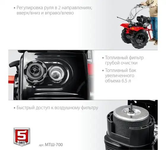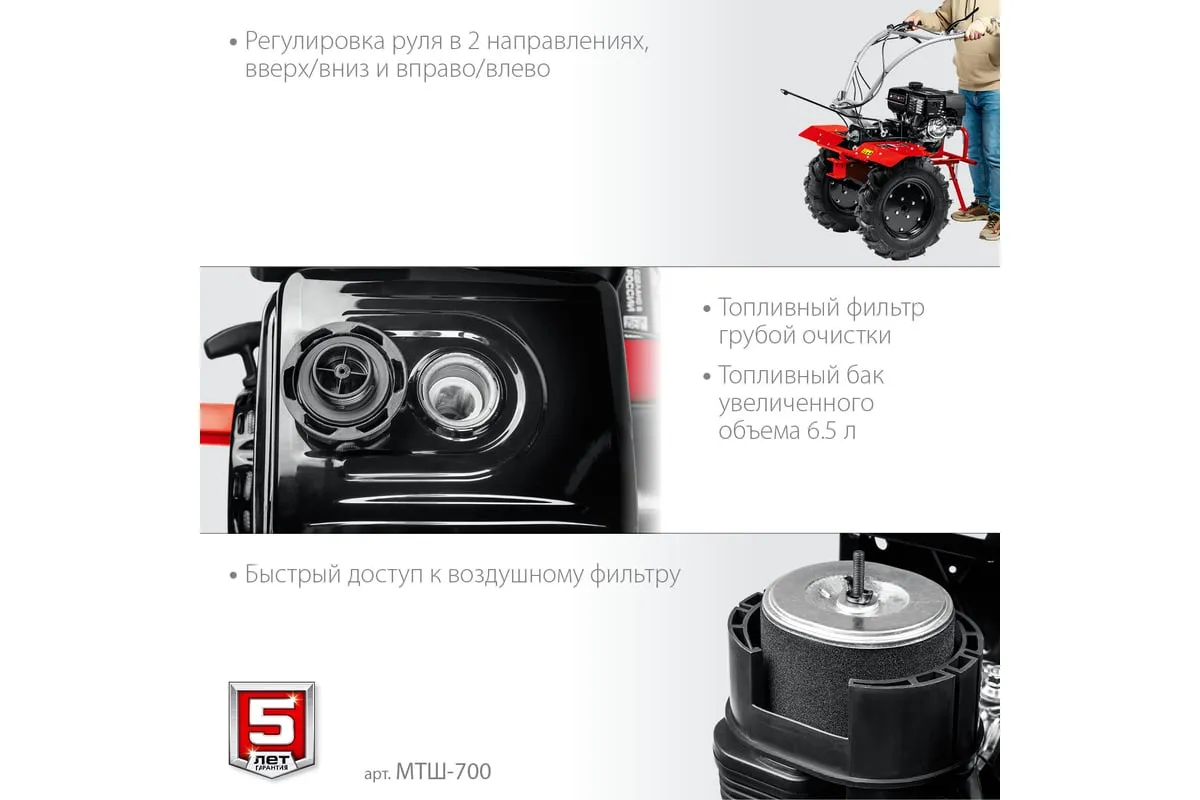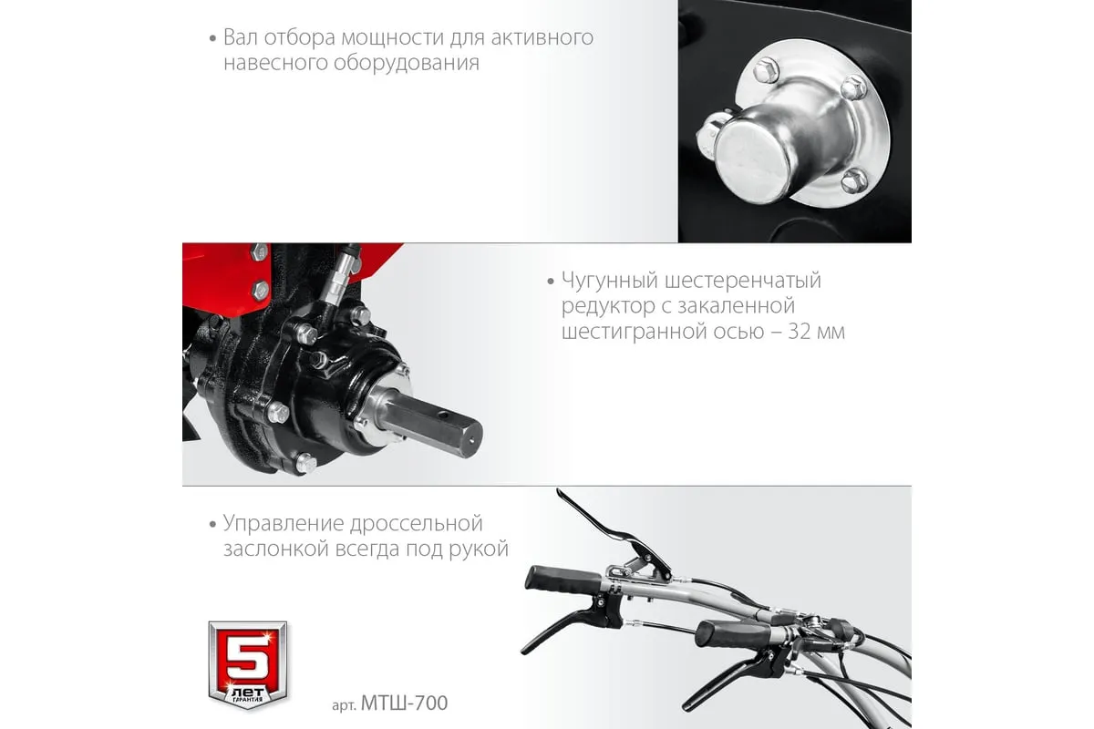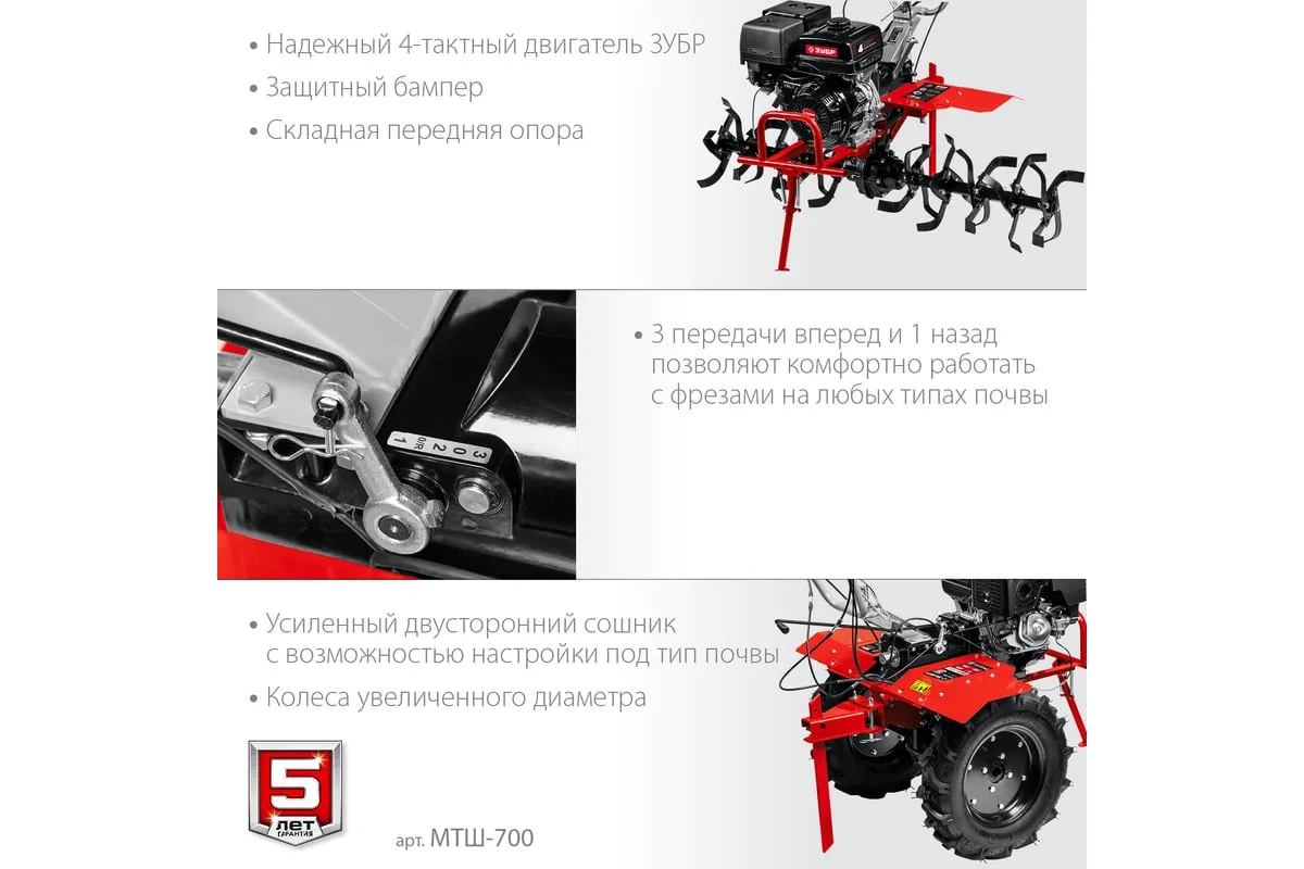 Бензиновый мотоблок с ВОМ ЗУБР 389 см3 МТШ-700 – мощная, высокопроизводительная машина для возделывания любого типа почвы. Вал отбора мощности позволяет использовать модель совместно с различным дополнительным оборудованием, чтообеспечивает широкий спектр применения мотоблока. Возможности выбора скоростиповышает маневренность агрегата и делает его более эффективным. Наличие задней скорости поможет вытащить машину в случае застревания в земле. Колеса увеличенного диаметра с глубоким протекторомгарантируют отличную проходимостьпо любой поверхности, в том числе, и с неровным ландшафтом. 3 скорости вперед (понижающая, основная и повышающая) и 1 назад позволяют комфортно работать на любых типах почвы.