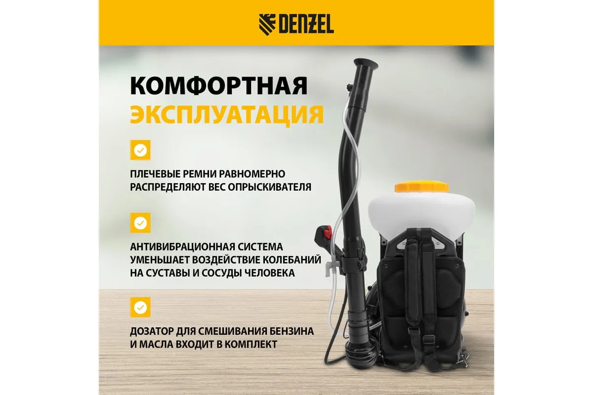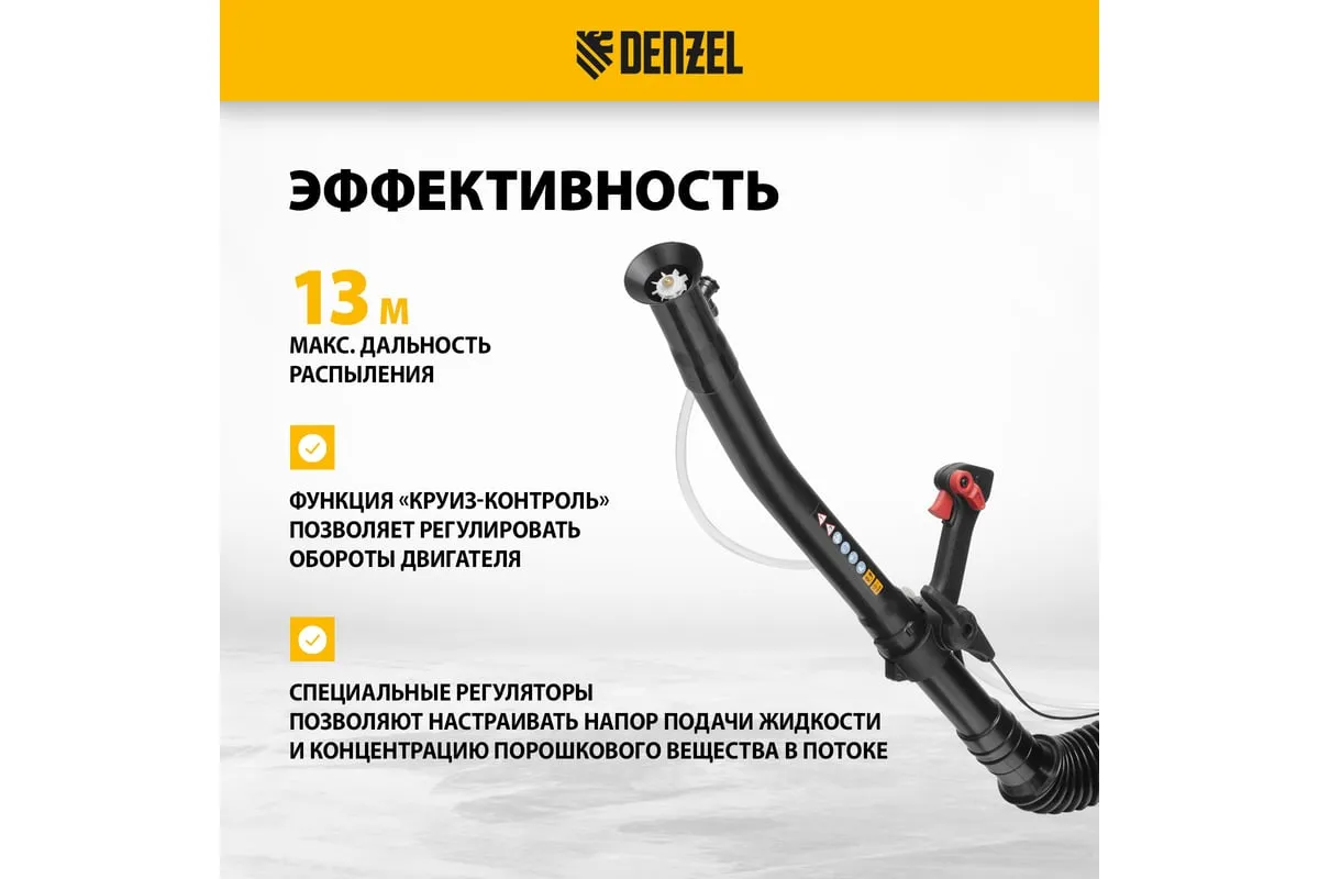 Бензиновый опрыскиватель Denzel gs-43 65301 с двигателем объемом 43 см3 и баком на 14 л предназначен для распыления жидких, порошковых и гранулированных веществ. Используется для ухода за растениями: обработки от насекомых и вредителей, внесения подкормки, профилактики и лечения заболеваний. Двигатель мощностью 2.5 л.с. обеспечивает дальность распыления до 13 м, поэтому опрыскиватель подходит для обработки участков большой площади. Также он может работать в режиме воздуходувки, позволяя убирать с дорожек опавшую листву и свежевыпавший снег.