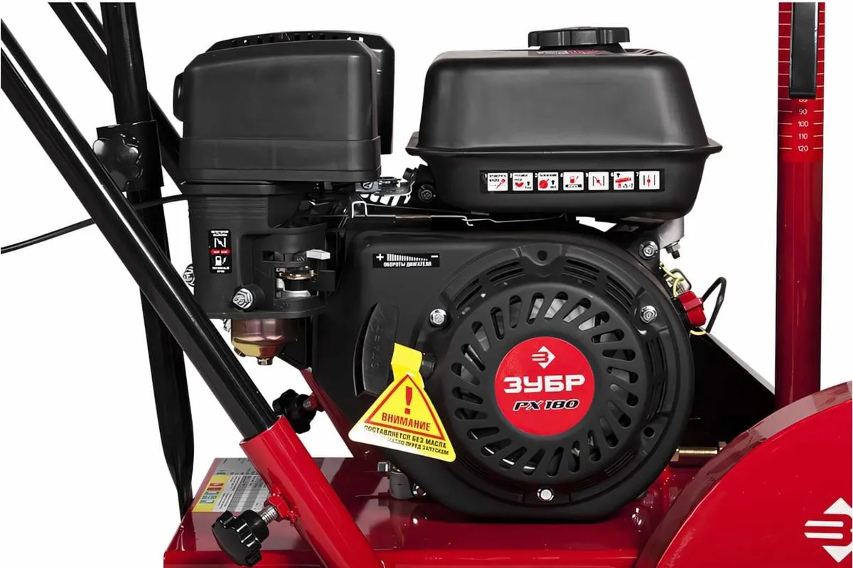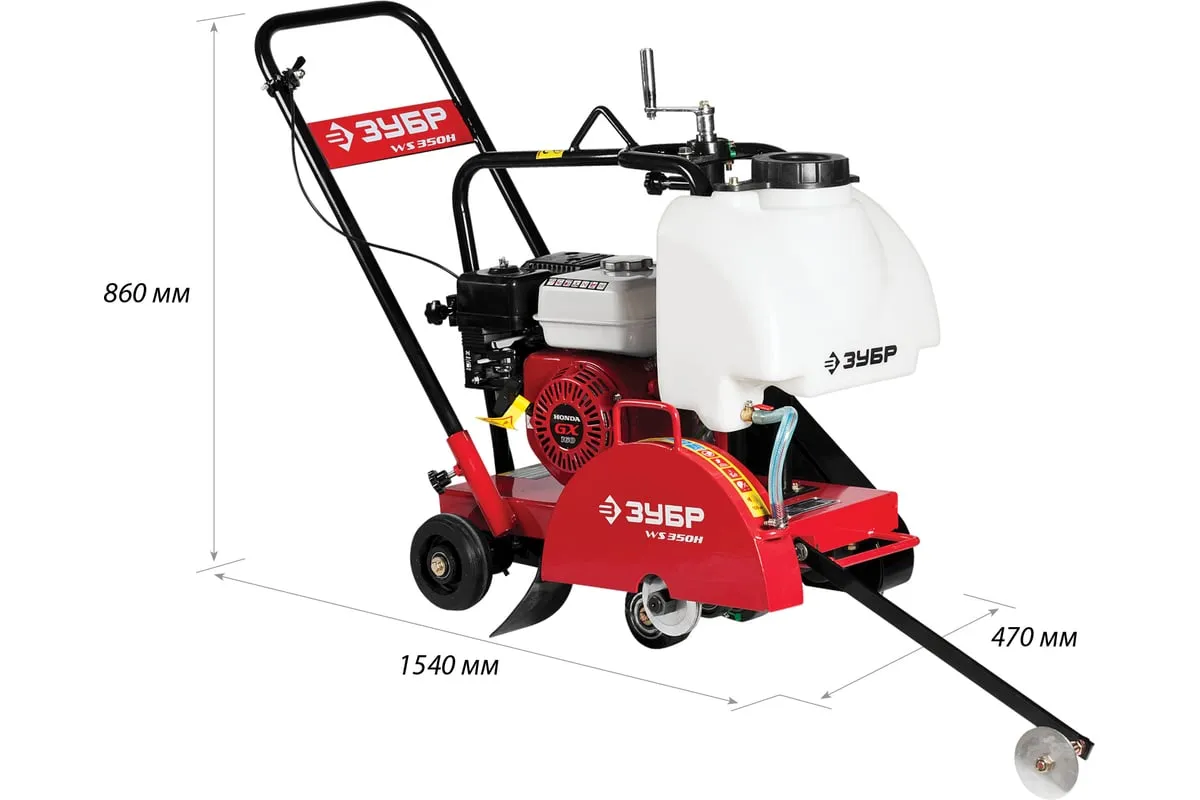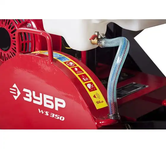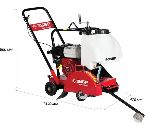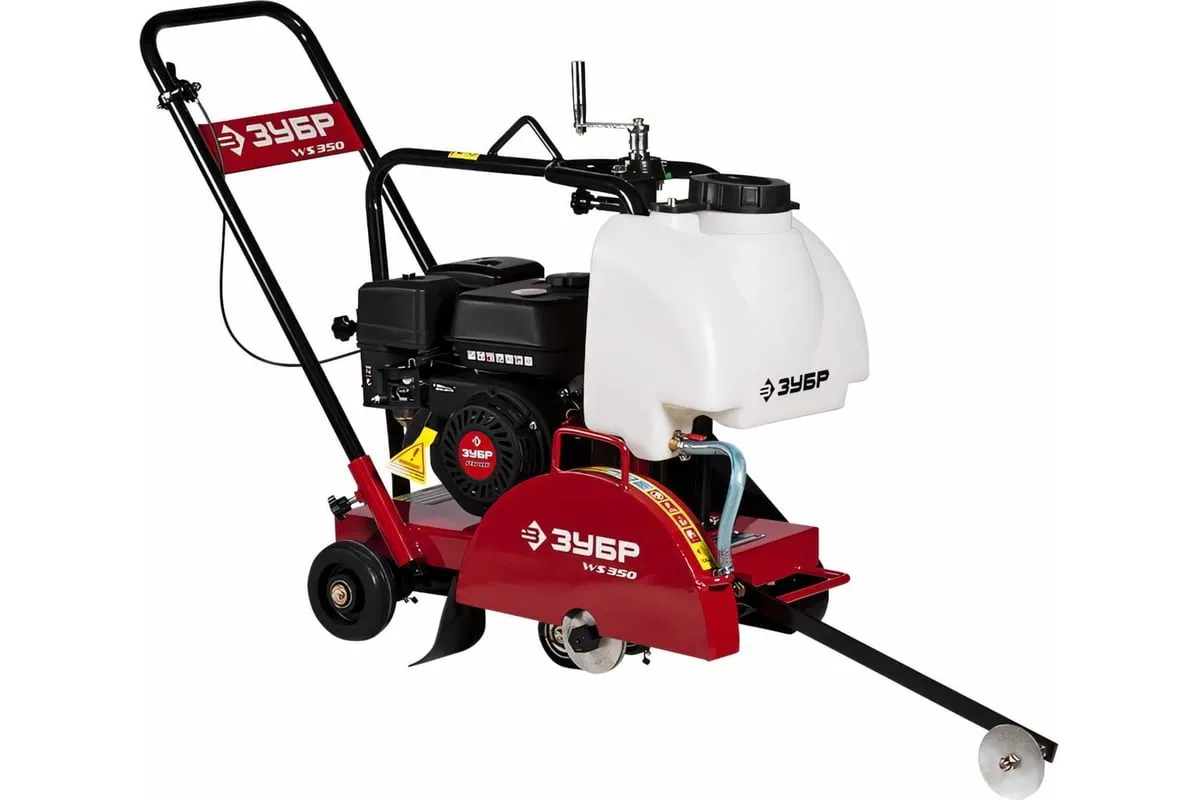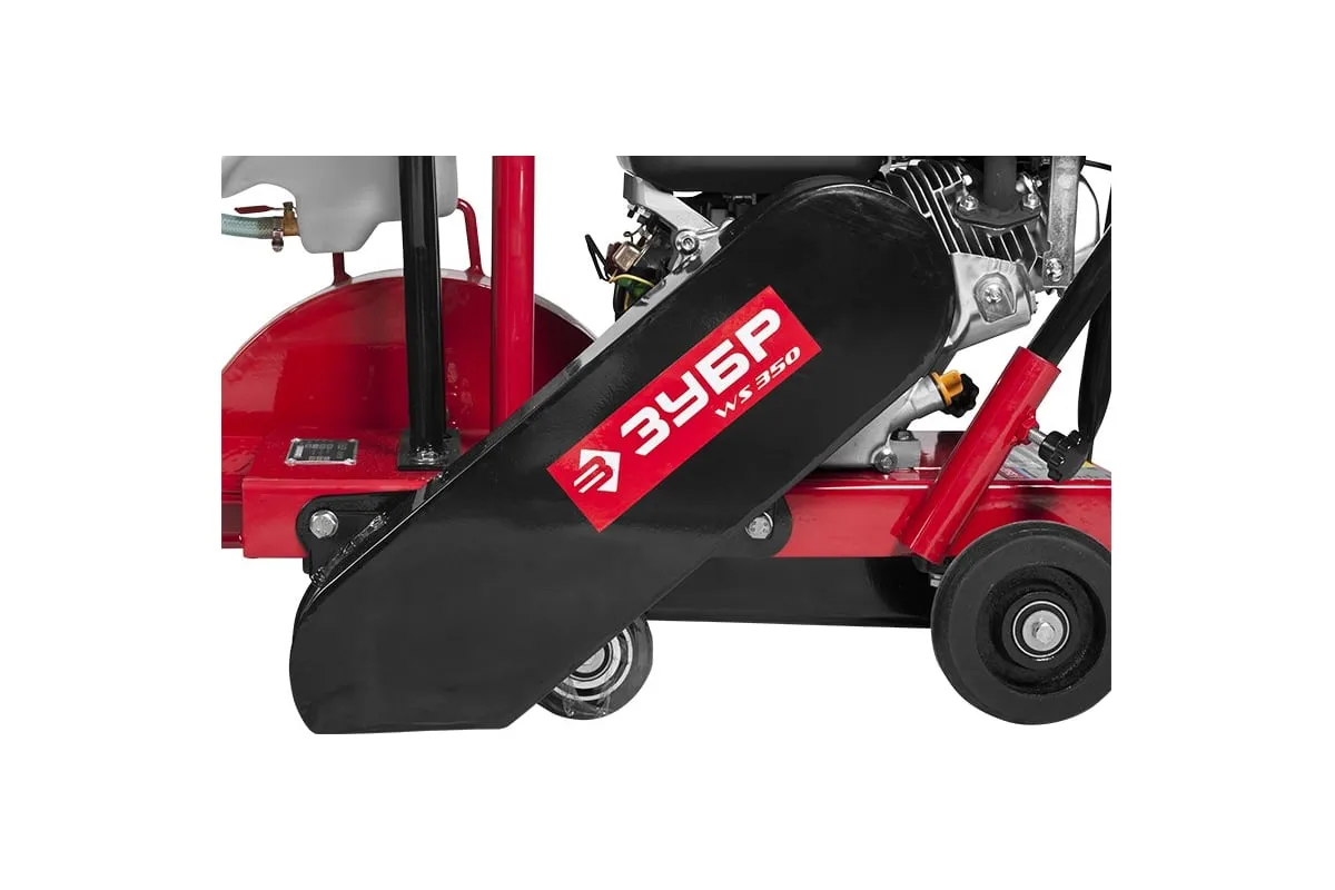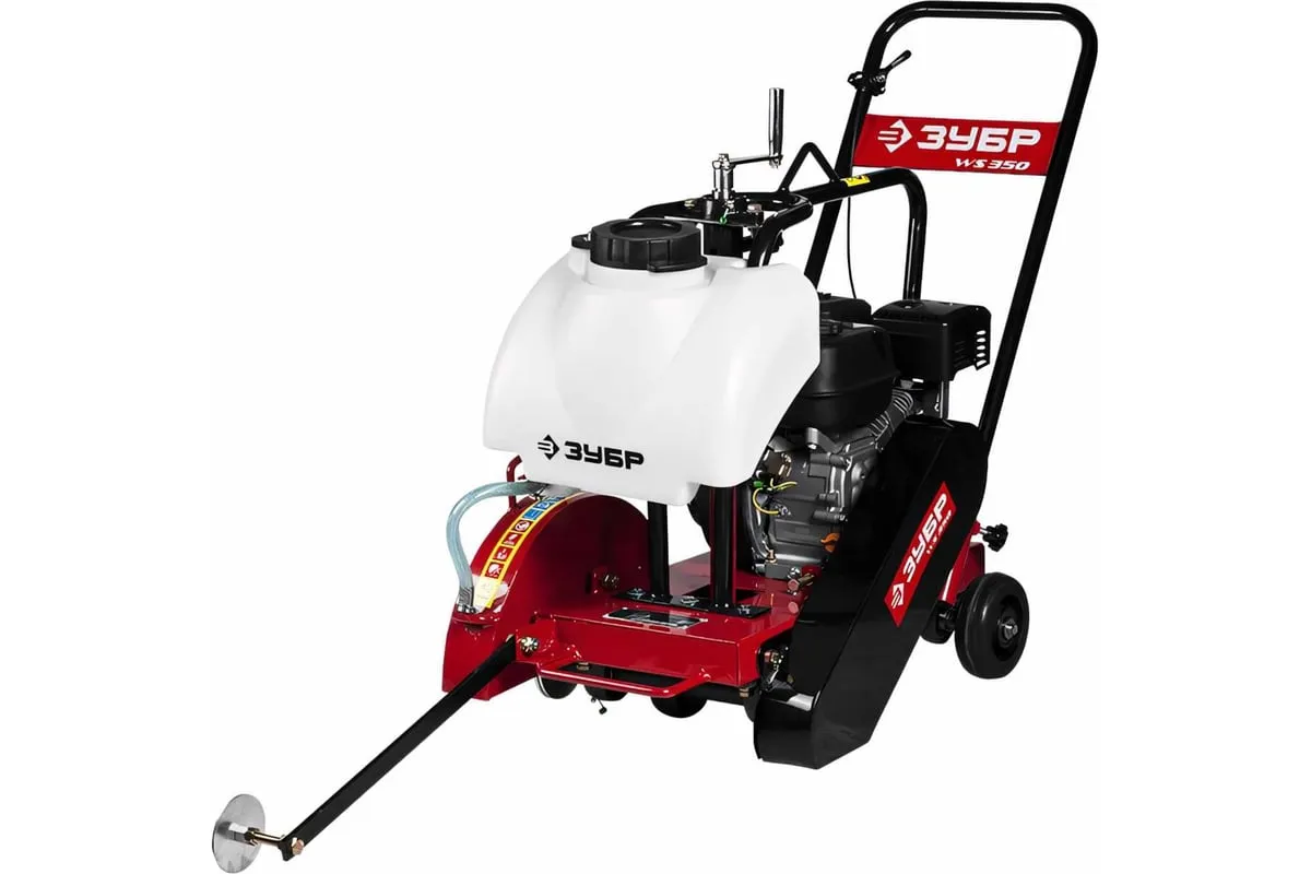 Бензиновый швонарезчик Зубр ЗШБ-350 оснащается мощным одноцилиндровым четырехтактным двигателем с ручной системой запуска. В качестве топлива используется бензин АИ-92. Назначение модели - резка дорожного полотна на глубину до 115 мм. Конструкция позволяет использовать диски с посадочным диаметром 25.4 и 50 мм. Колеса ощутимо облегчают транспортировку агрегата. Производительность швонарезчика составляет 60 м/ч. В случае наличия менее 0.25 л масла в масляном баке (полный объем - 0.6 л) срабатывает система защиты и оборудование выключается. Модель не требует частого сервисного обслуживания.