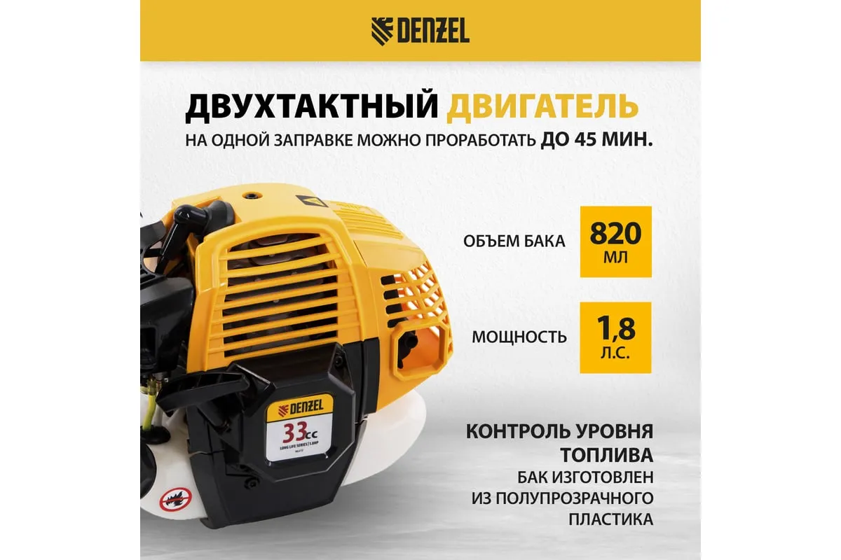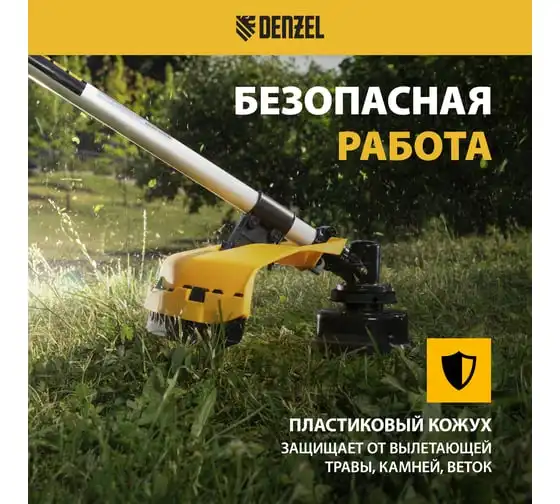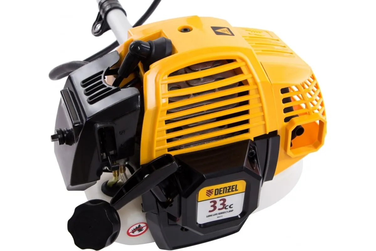 Бензиновый триммер Denzel DR-33S 96272 предназначен для ухода за газоном, скашивания густой и слежавшейся травы, подпиливания молодых кустарников.