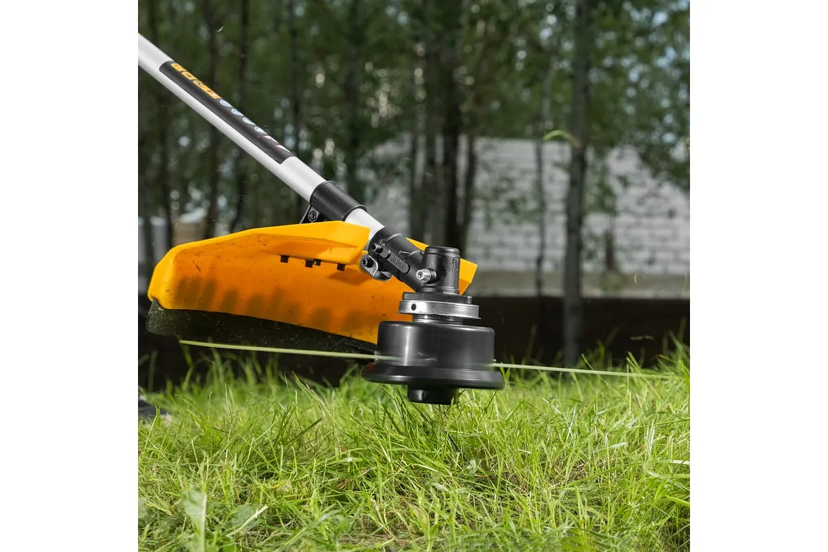 Двигатель объемом 33 см3 обеспечивает скорость вращения оснастки 9500 об/мин.