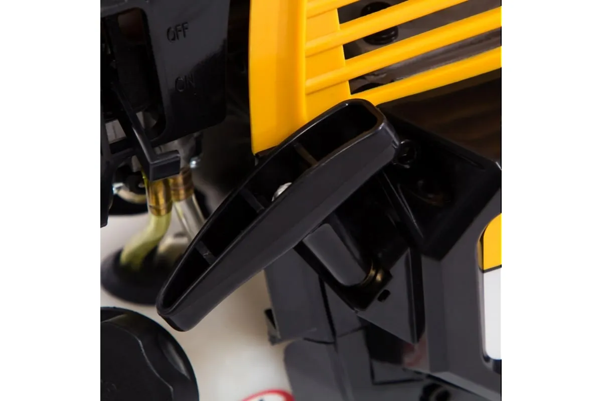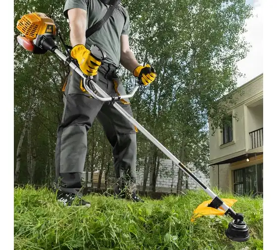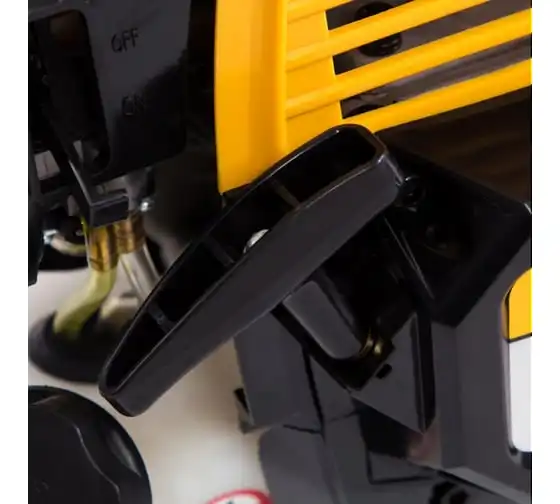 Триммер работает на топливной смеси без подключения к электросети, поэтому его можно эксплуатировать при высокой влажности и после дождя.