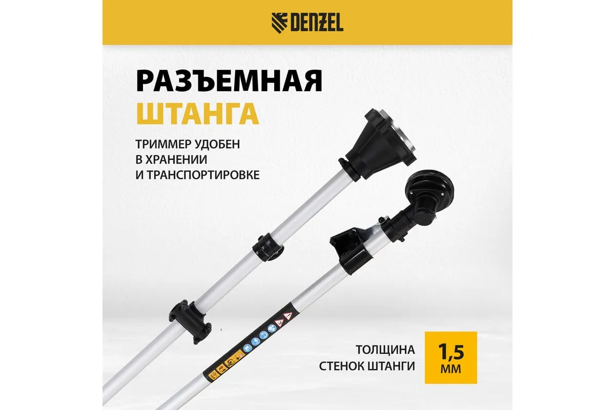 Разъемная штанга значительно облегчает транспортировку триммера и позволяет разместить его в ограниченном пространстве для хранения.