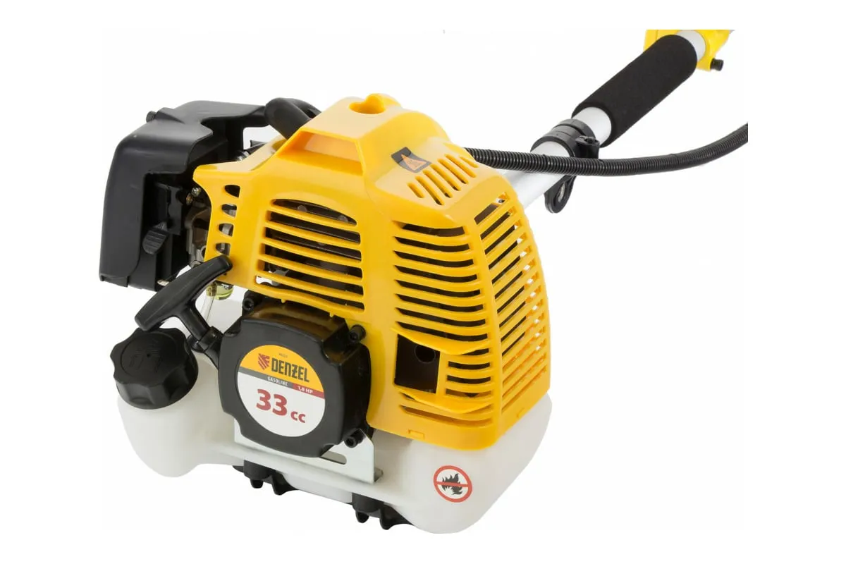 Бензиновый триммер DENZEL DT 33S 96223 справится со скашиванием густой травы на неровных больших площадях.