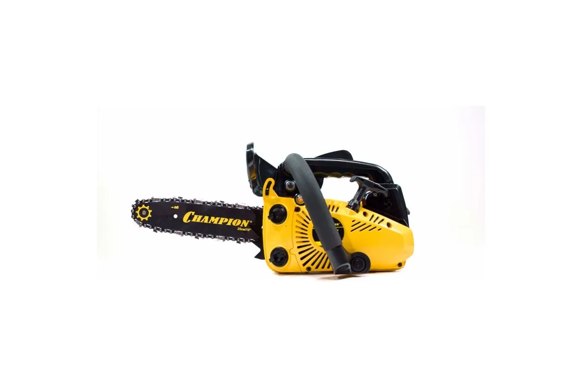 Бензопила Champion 125T-10" S2512 - легкий и компактный инструмент для распиливания древесины. Бензиновый 2-х тактный двигатель мощностью 0.95 л.с. запускается с ручного стартера. Система воздушного охлаждения продлевает срок службы бензопилы. Задняя рукоятка обеспечивает комфортный захват. Предусмотрен тормоз цепи для безопасности пользователя, а также уловитель цепи для предотвращения травм.