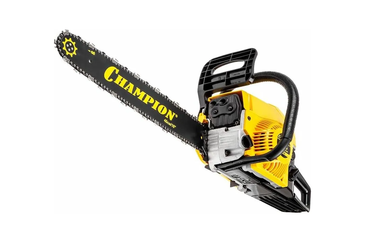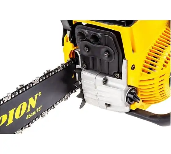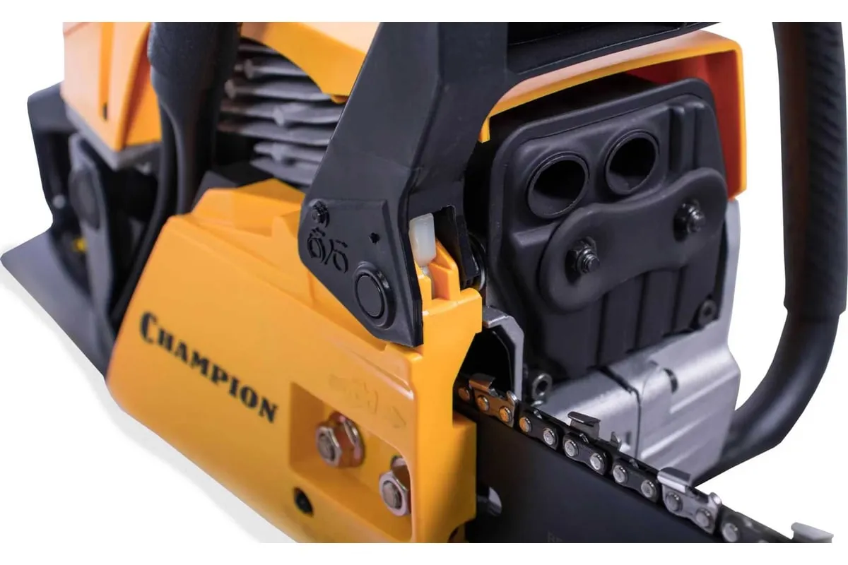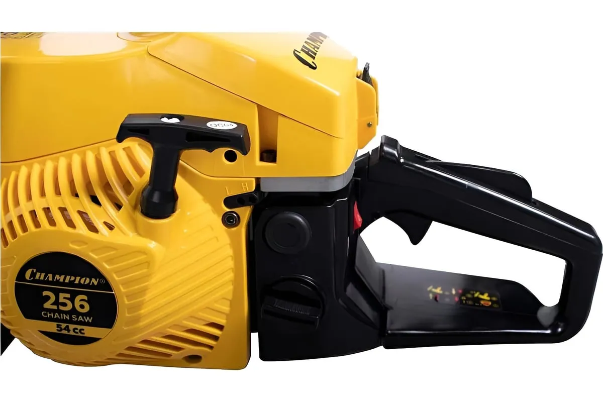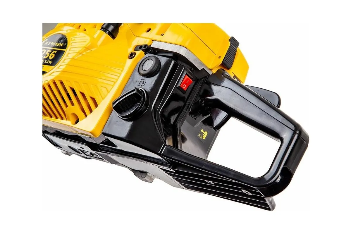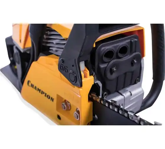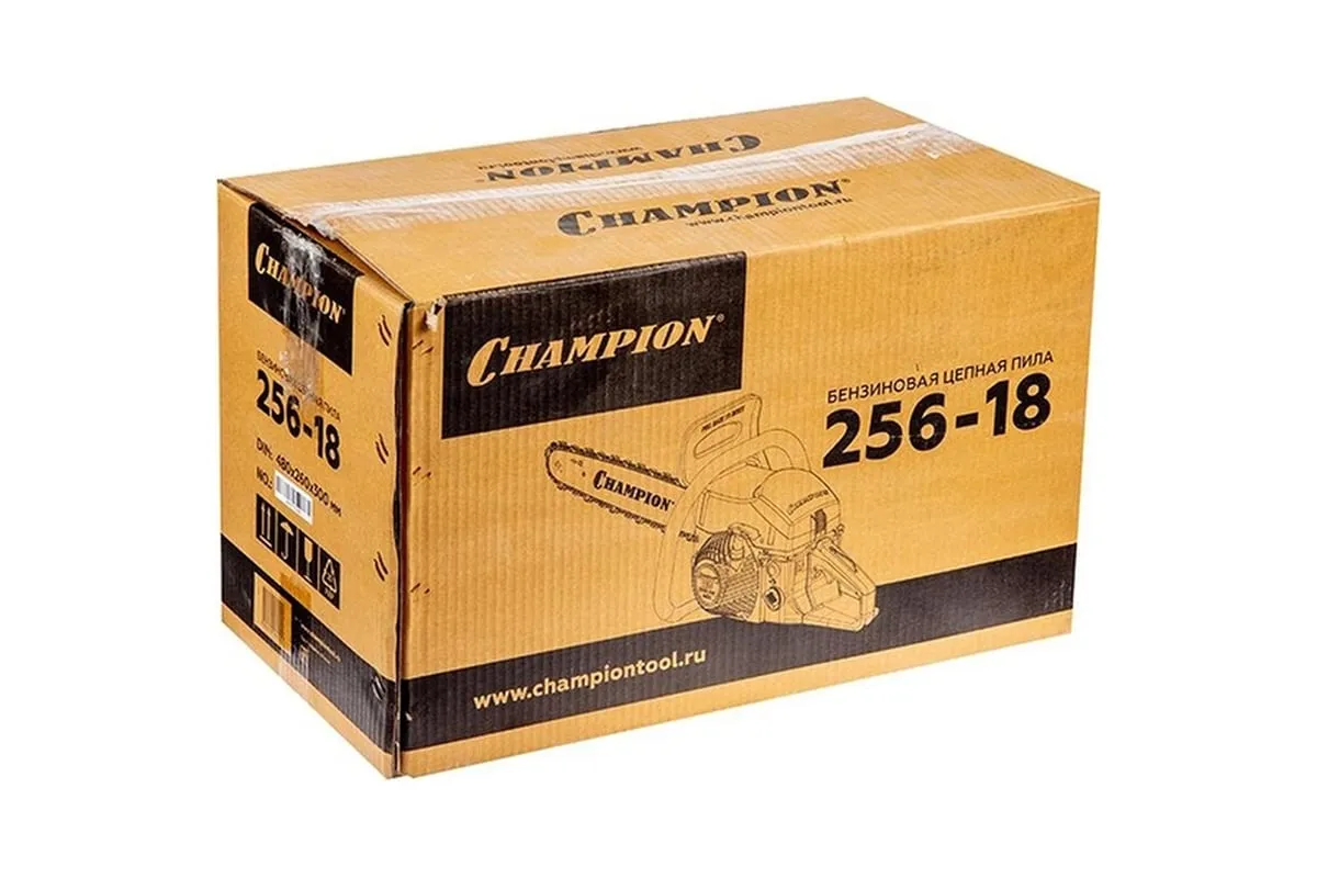 Бензопила Champion 256-18" укомплектована 45-сантиметровой шиной и цепью. Подходит для валки деревьев. Имеет мощный мотор, который запускается с ручного стартера. Предусмотрен механический тормоз цепи для безопасности пользователя. Благодаря ручному насосу для подкачки топлива не возникнет трудностей при запуске инструмента после длительного перерыва. Пила оснащена регулируемой автоматической системой подачи масла на шину и цепь.