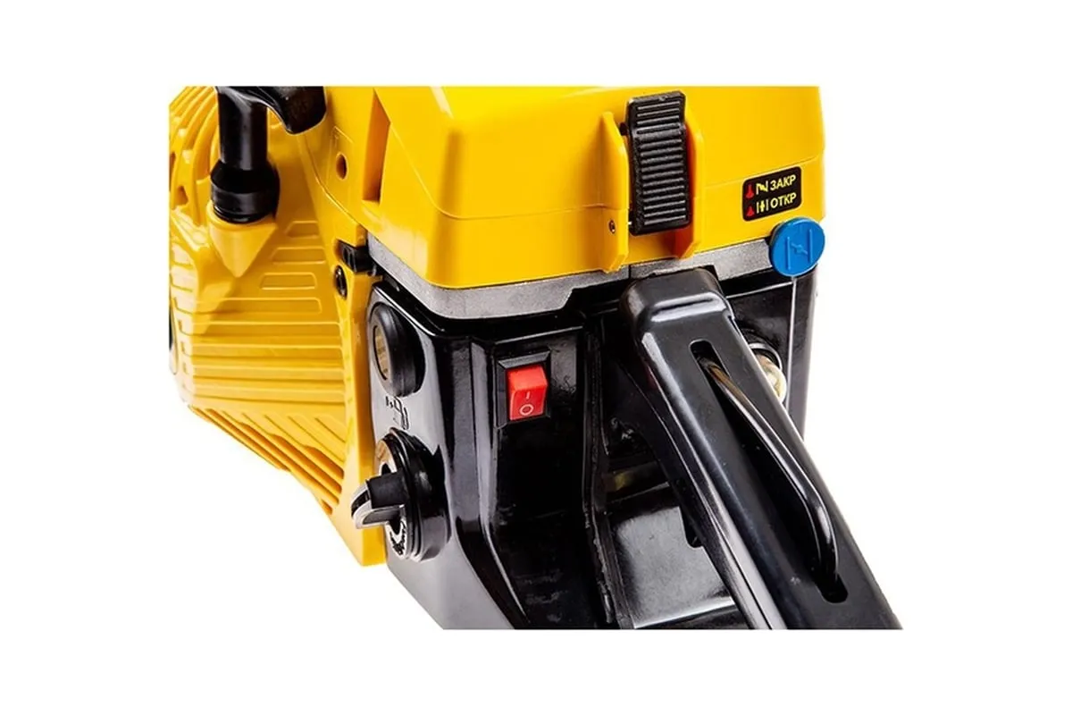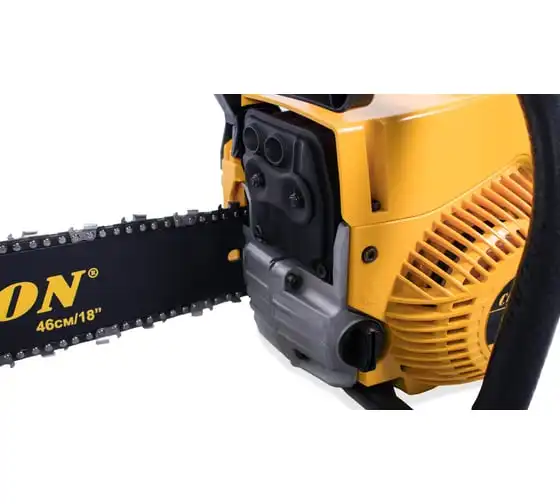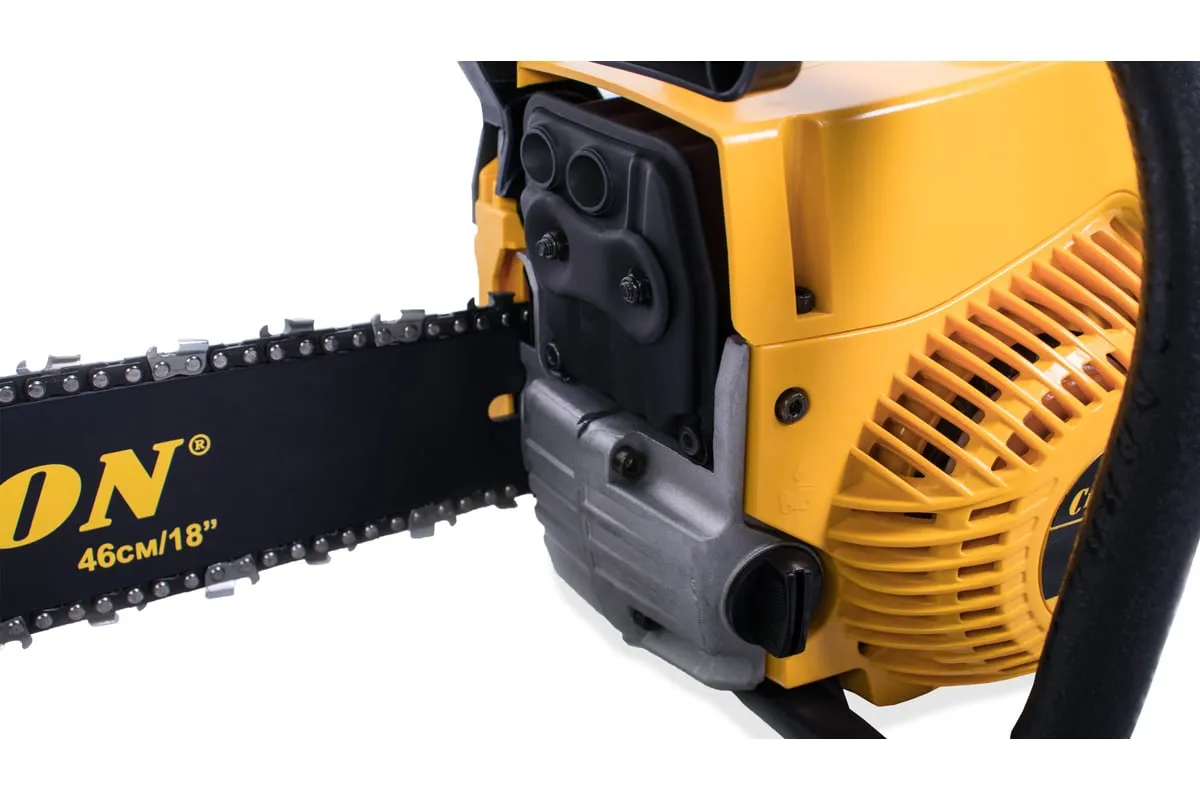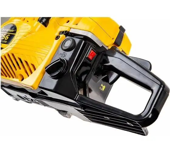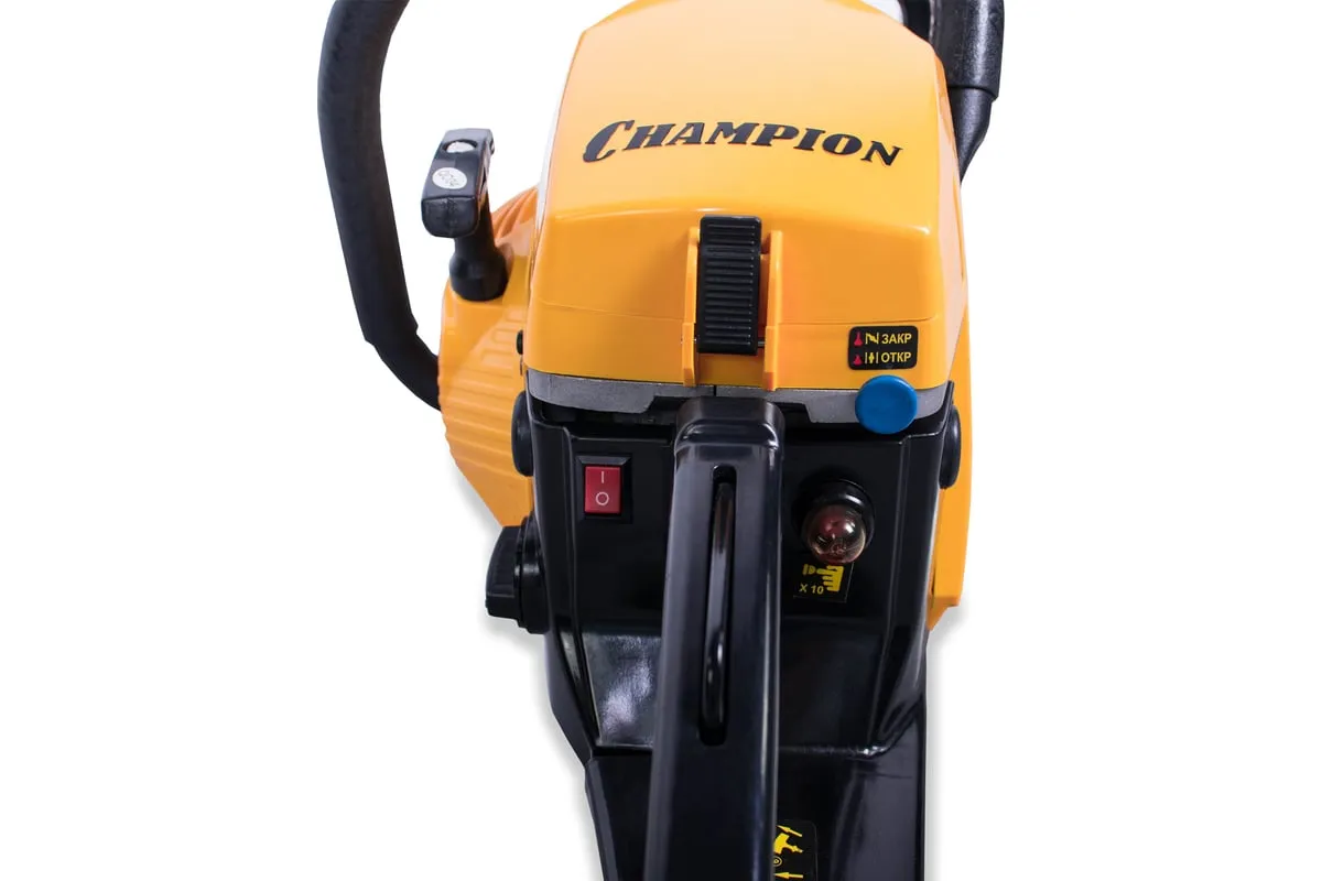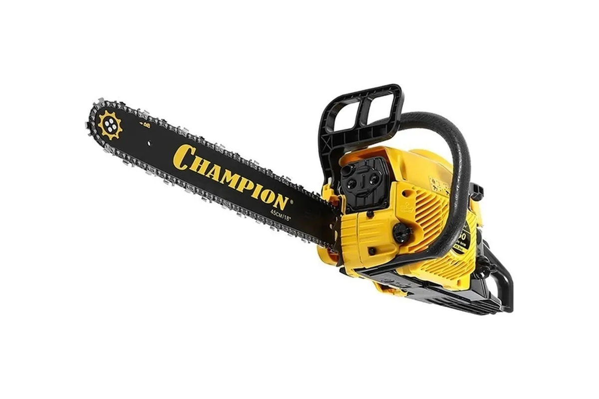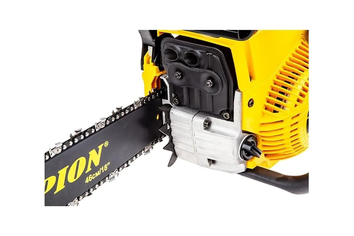 Бензопила Champion 256-18" укомплектована 45-сантиметровой шиной и цепью. Подходит для валки деревьев. Имеет мощный мотор, который запускается с ручного стартера. Предусмотрен механический тормоз цепи для безопасности пользователя. Благодаря ручному насосу для подкачки топлива не возникнет трудностей при запуске инструмента после длительного перерыва. Пила оснащена регулируемой автоматической системой подачи масла на шину и цепь.