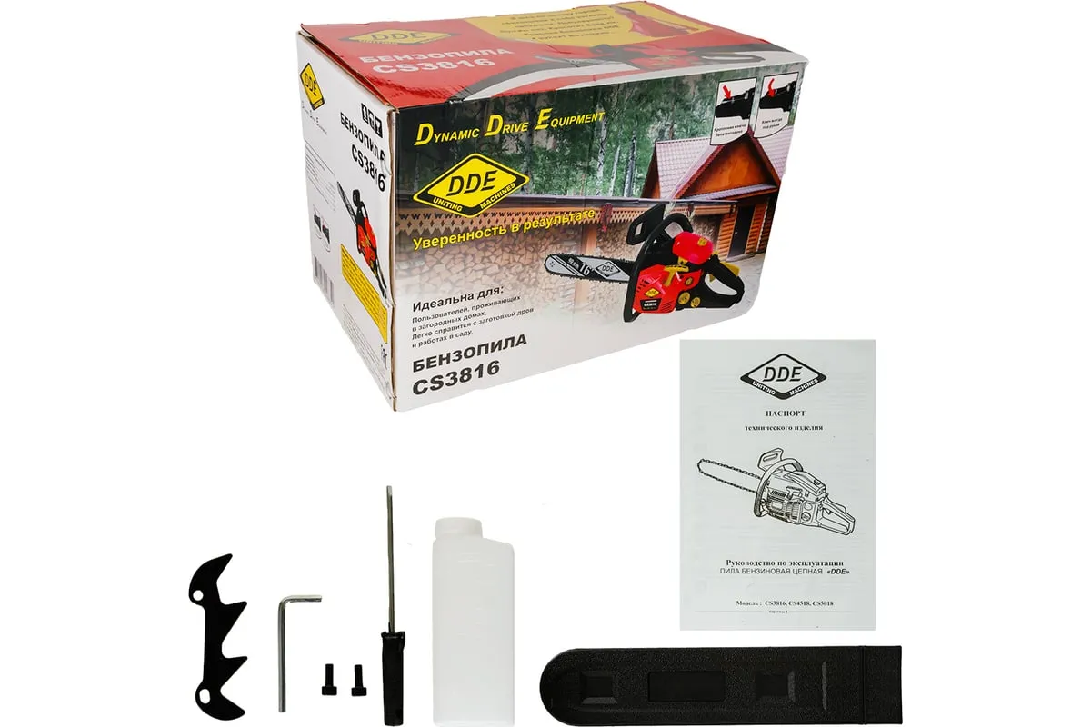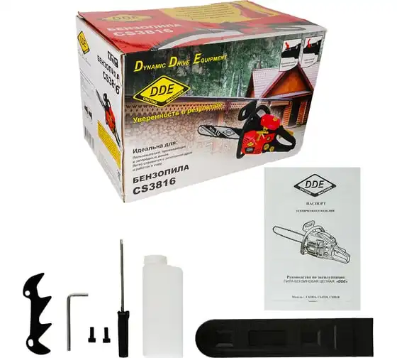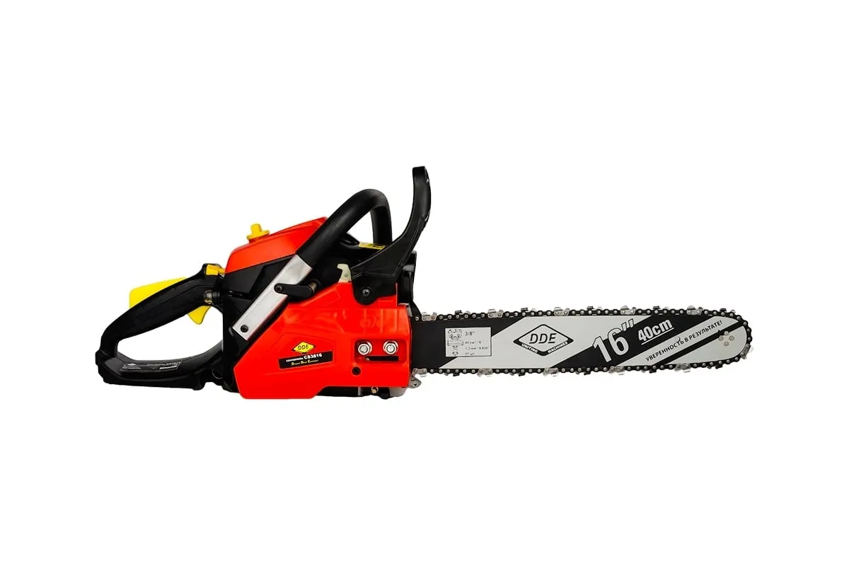 Бензопила DDE CS3816 предназначена для домашнего использования. Оснащена праймером для подкачки топлива и упрощения запуска мотора. Инерционный тормоз служит для мгновенной остановки режущей части в случае отдачи. Система антивибрации обеспечивает комфортную работу.