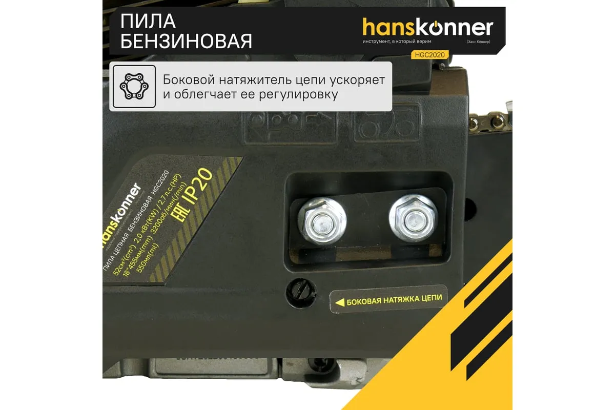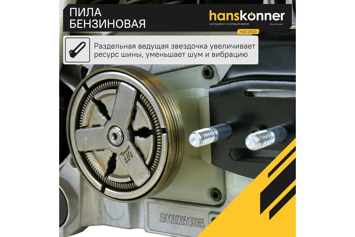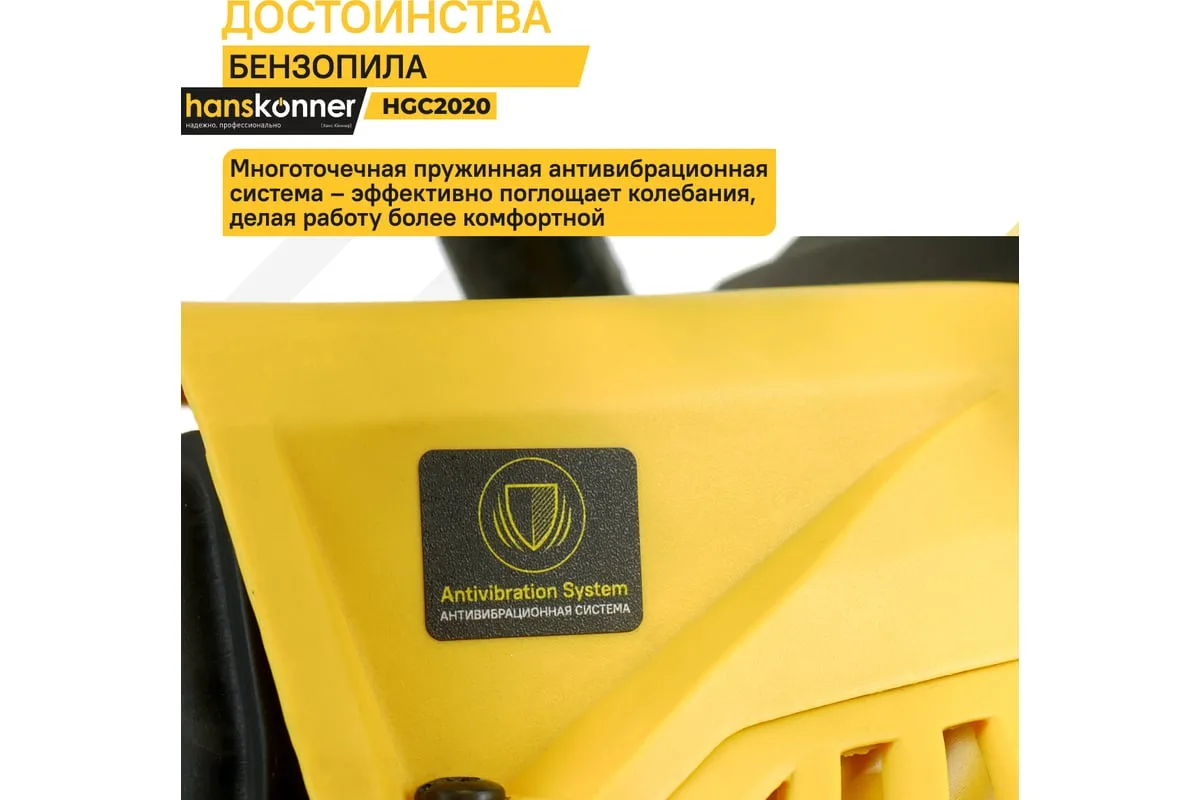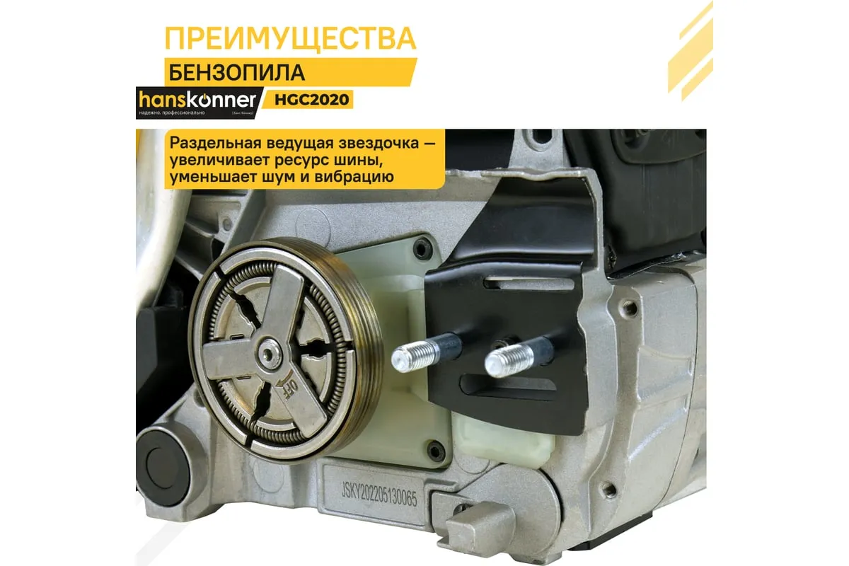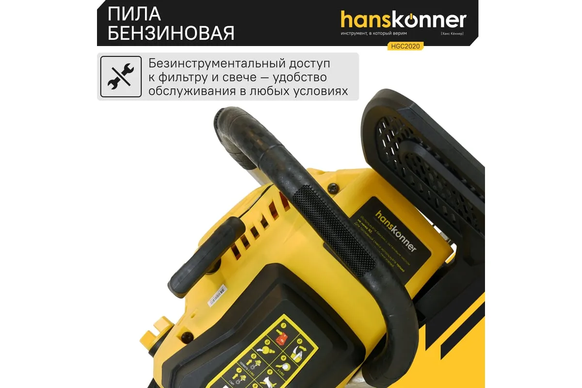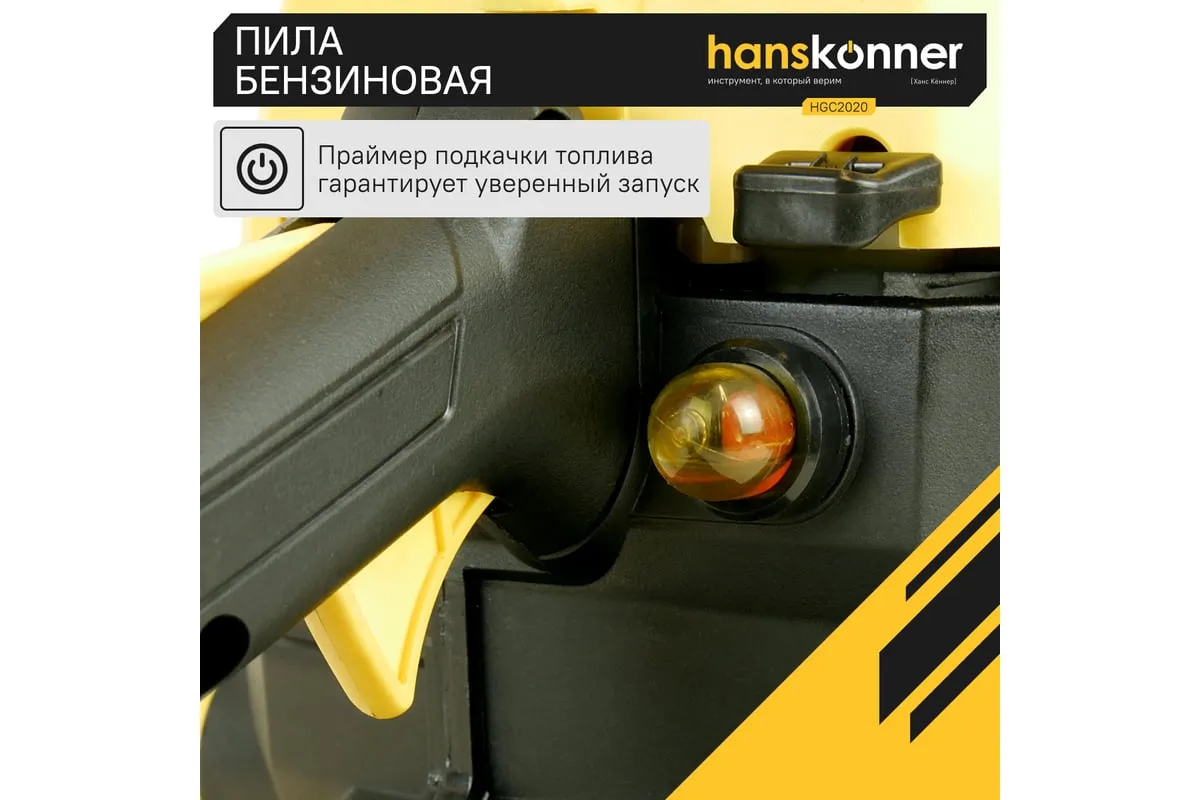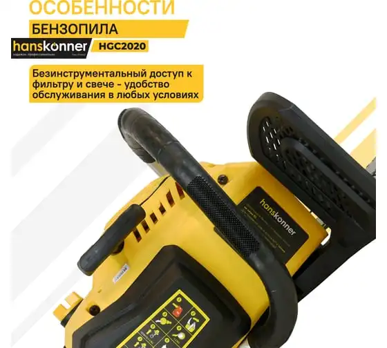 Бензопила Hanskonner HGC2020 предназначена для валки небольших деревьев, разделки бревен, распиловки деревянных балок и досок как вдоль, так и поперек волокон древесины, а также для обрезки сучков и заготовки дров. Система стабилизации двигателяобеспечивает достаточную производительность в широком диапазоне оборотов и мгновенное ускорение цепи для более эффективного пиления. Бумажный фильтр «автомобильного» типа повышенной степени очистки воздухапредотвращает попадание в карбюратор пыли и облегчат доступ воздуха для воздушно-топливной смеси.