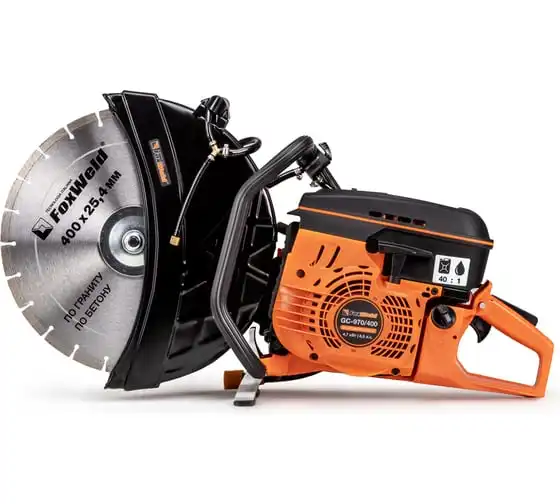 Foxweld GC-970/400 - мощный универсальный бензорез с идеальным соотношением мощности 6,5 л.с. к весу 12 кг. Предназначен для сухой и мокрой резки бетона, гранита, кирпича, строительных блоков, бордюров, асфальта, камня и др., с применением алмазного диска диаметром 350/400 мм. Для резки чугуна, стали, алюминия и других металлов используются абразивные диски диаметром 355/400 мм. В комплекте есть переходное кольцо 32 мм на 25.4 мм, которое позволяет устанавливать диски с посадочным диаметром 32 мм. Бензорез используется в строительстве зданий, сооружений, мостов, дорог, а также для спец.применения: оснащение пожарных и спасательных бригад, выполнение спасательных работ и расчистки завалов.