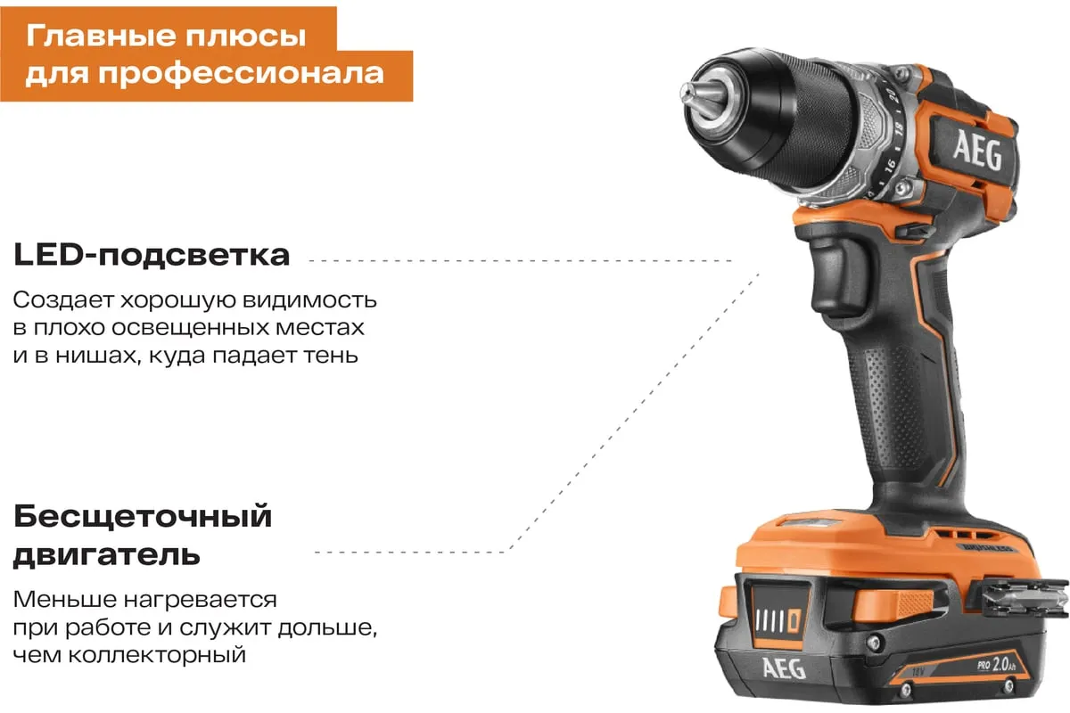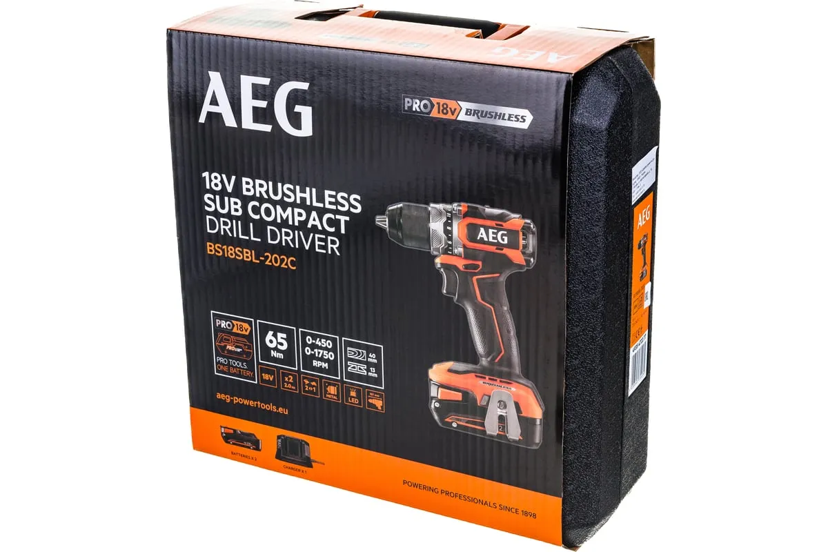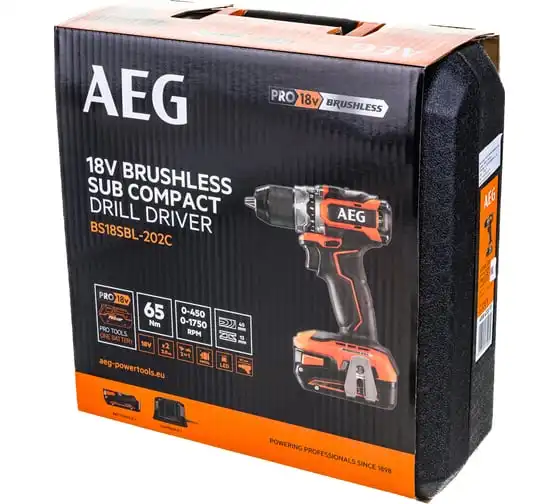 Бесщеточная аккумуляторная дрель-шуруповерт BS18SBL-202C AEG 4935472277 сочетает в себе сверхкомпактный дизайн, высокую производительность и надежность.