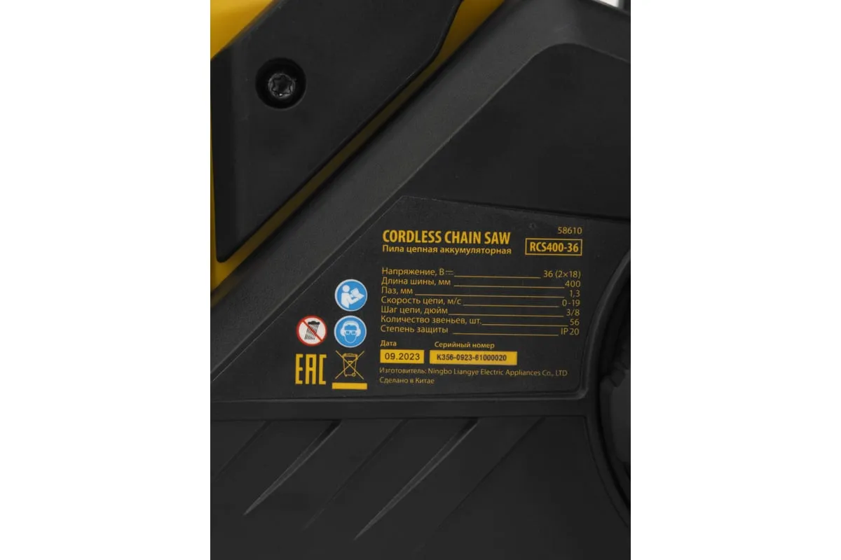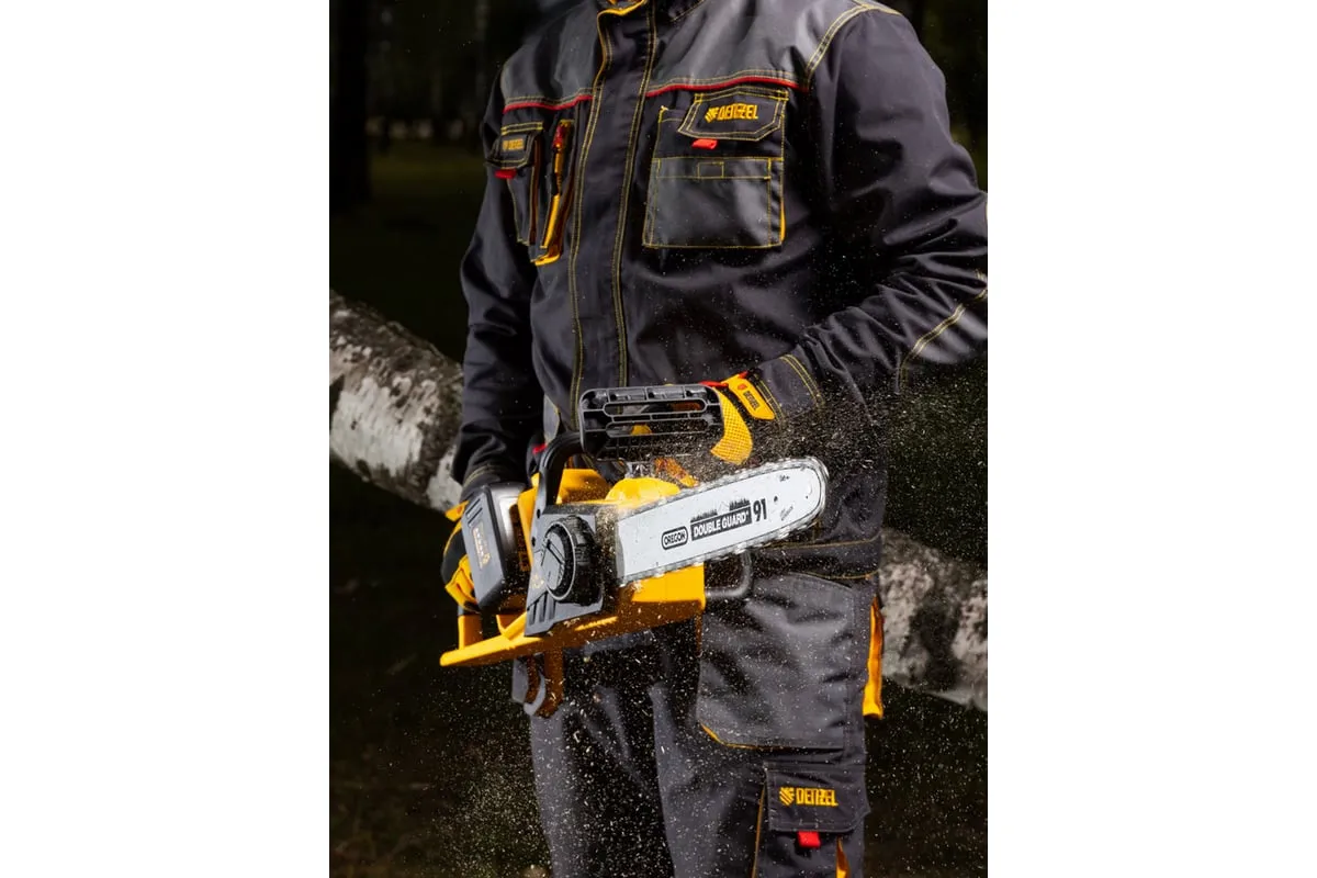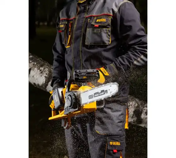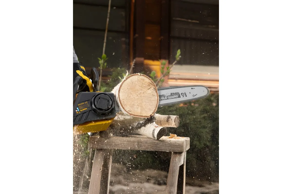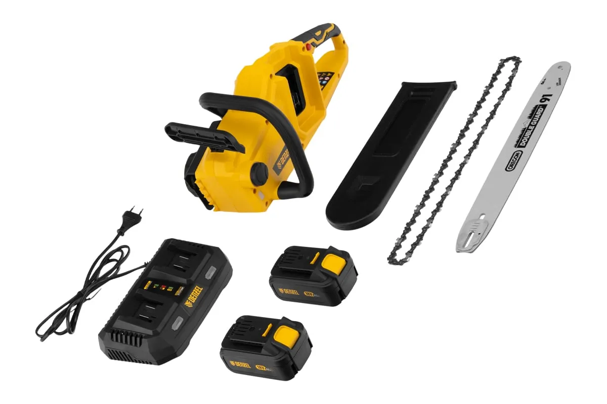 Бесщеточная цепная аккумуляторная пила DENZEL RCS400-36 58610 применяется для валки деревьев и заготовки дров.
