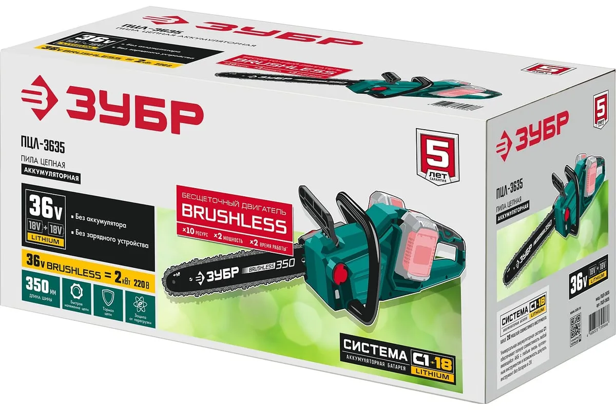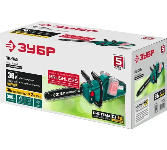 Бесщеточная цепная пила ЗУБР 36 В ПЦЛ-3635 используется для пиления ветвей и обрезки сучьев. Оснащена бесщеточным электрическим двигатель, которыйотличается высокой эффективностью, низким потреблением энергии и долгим сроком службы. Система плавного запускапозволяет раскручивать двигатель без рывка и пусковой перегрузки. Благодаря работе от аккумулятора модель имеет низкий уровень шума, небольшой вес и независима от источников электричества. Безопасность. Защита от перегрузки предохраняет оператора и изделие при заклинивании диска. Бесключевая регулировка натяжения цепиобеспечивает удобствопри работе.