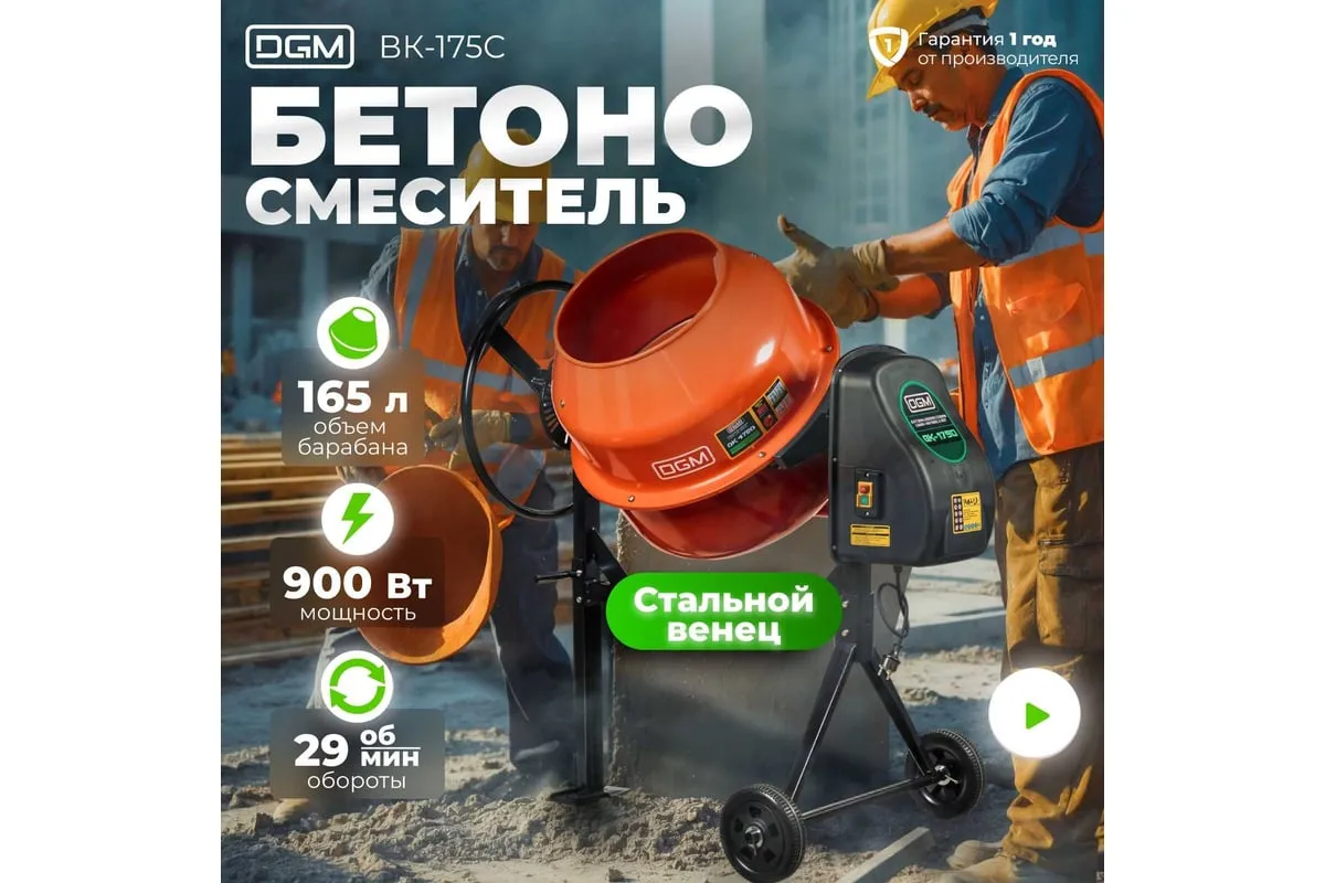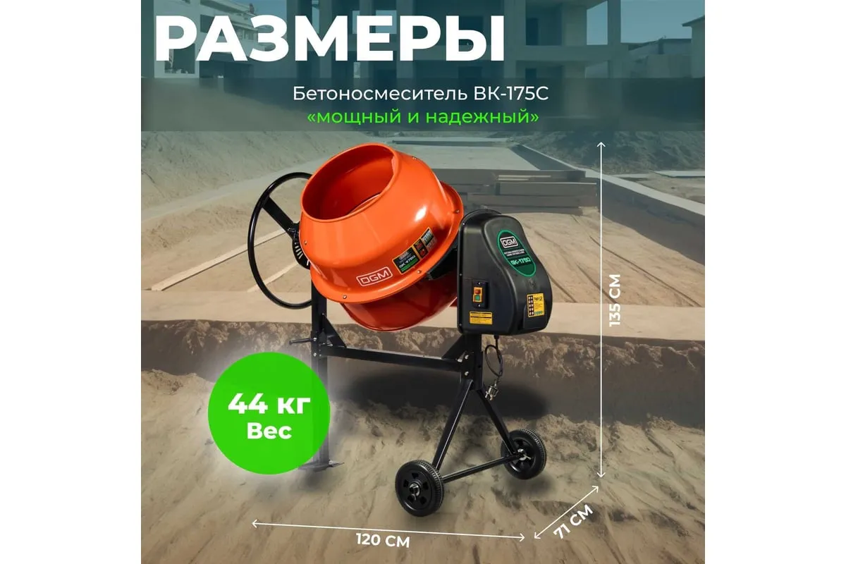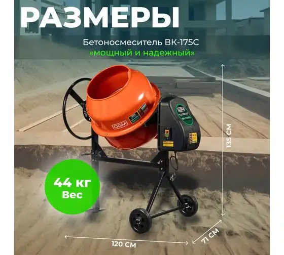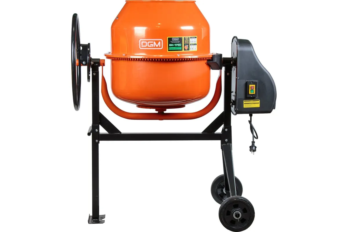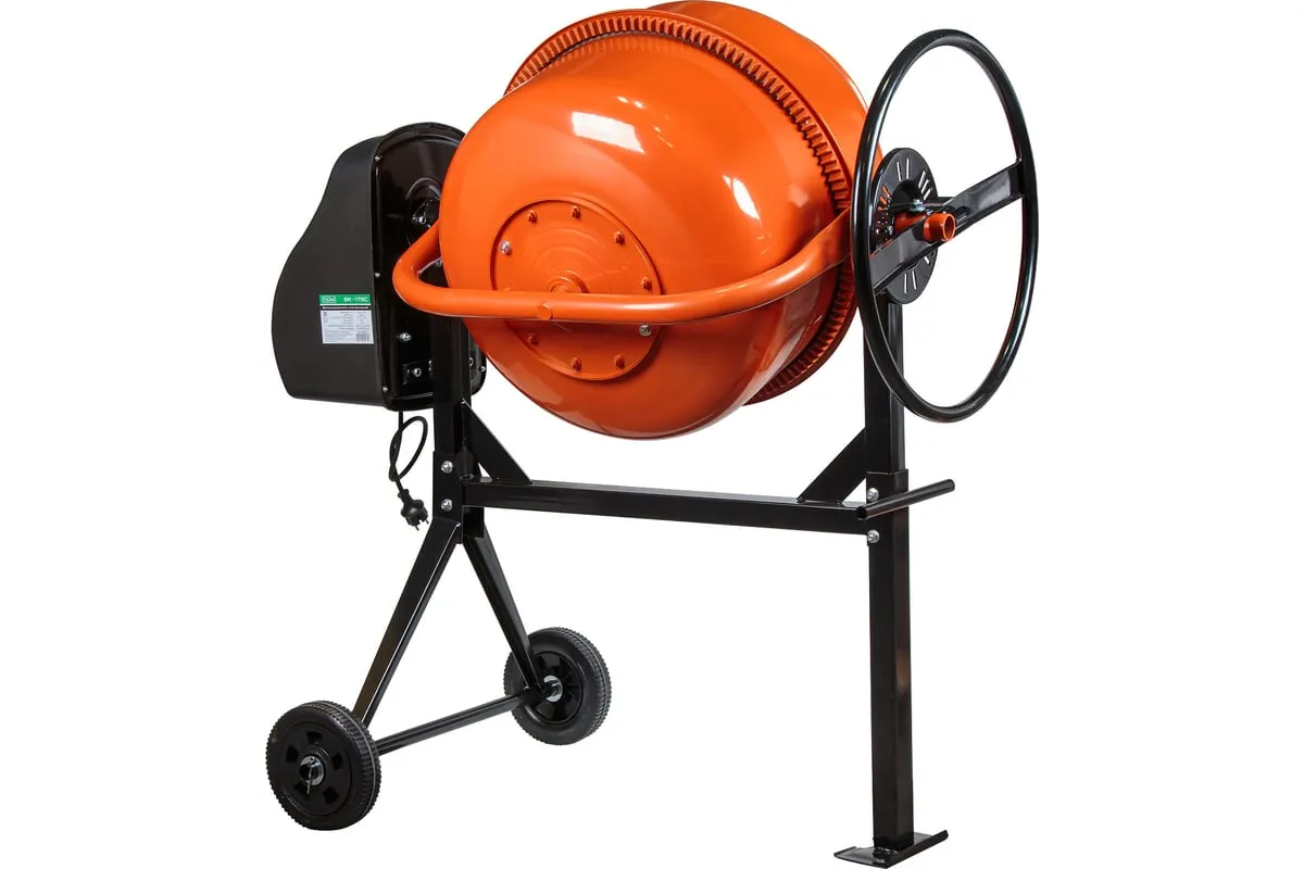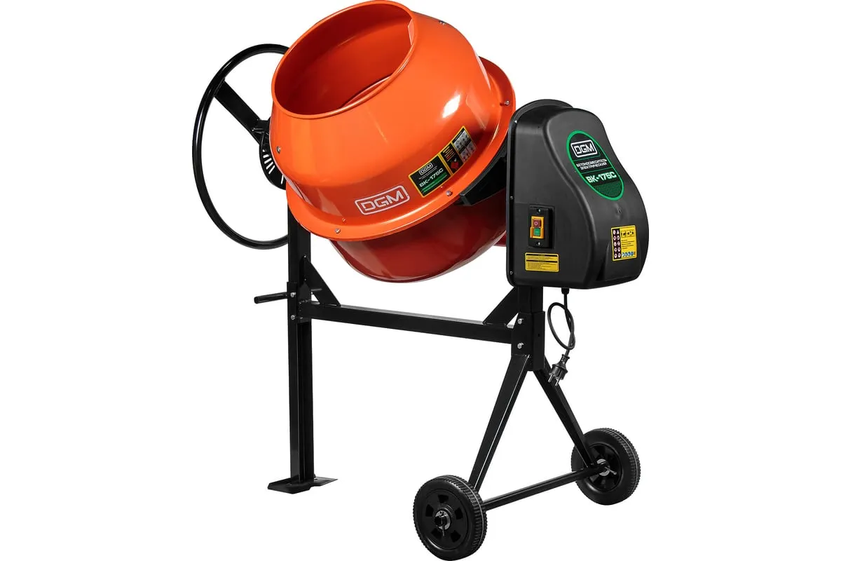 Опрокидывание барабана путем отклонения рулевого колеса. Защитный кожух на ведущей шестерне. Асинхронный двигатель с термозащитой. Болтовое соединение барабана к подшипнику. Чугунная ведущая шестерня. Чугунный зубчатый венец. Эффективное воздушное охлаждение двигателя. Высокопрочный приводной ремень ручейкового типа, усиленный синтетическим армирующим кордом.