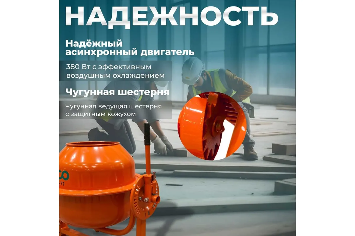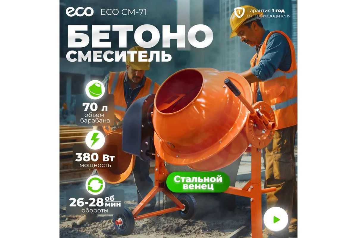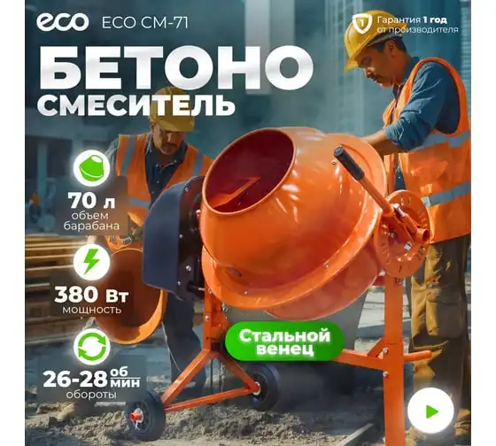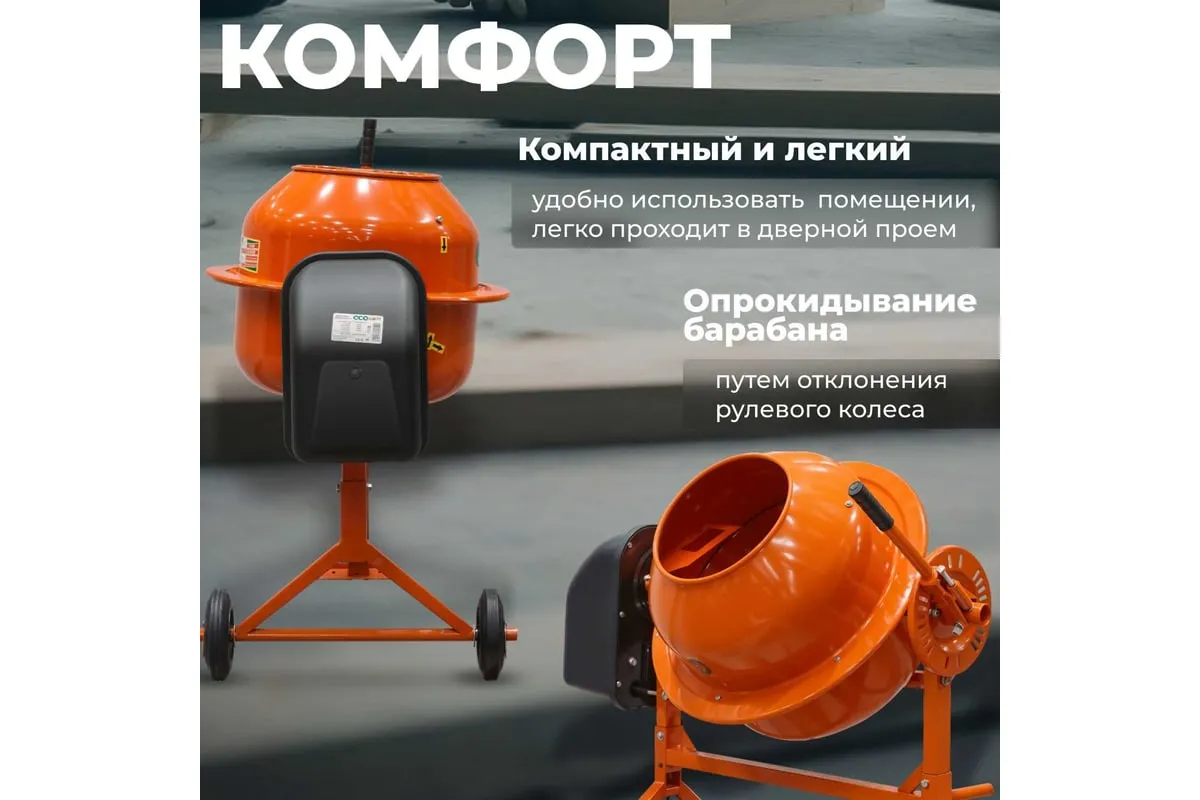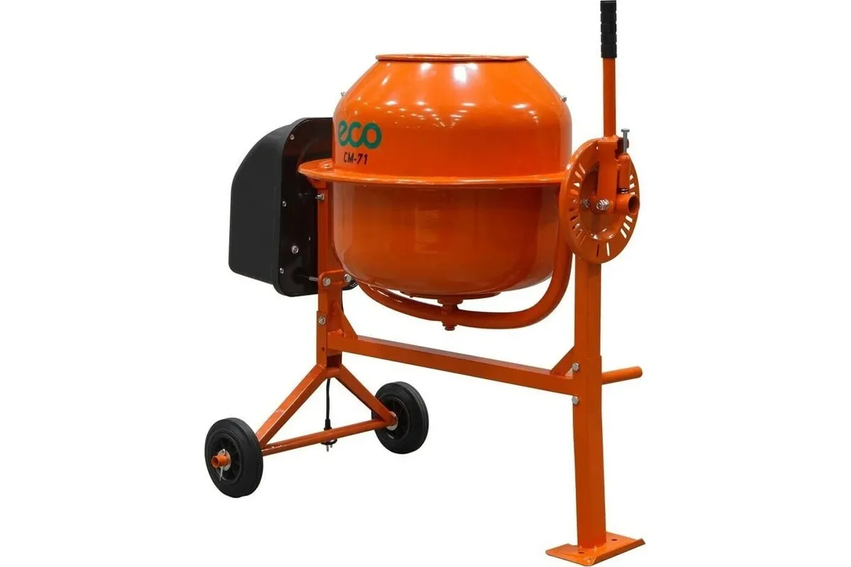 Бетономешалка ECO CM-71 служит для замешивания растворов известки и штукатурки, бетонных смесей и сухих материалов при выполнении строительных и ремонтных работ. Оборудование имеет жесткую конструкцию, устойчивую к значительным рабочим нагрузкам. Чаша удобно опрокидывается путем отклонения рулевого колеса. Транспортировочные колеса способствуют простоте перемещения агрегата в нужное место.